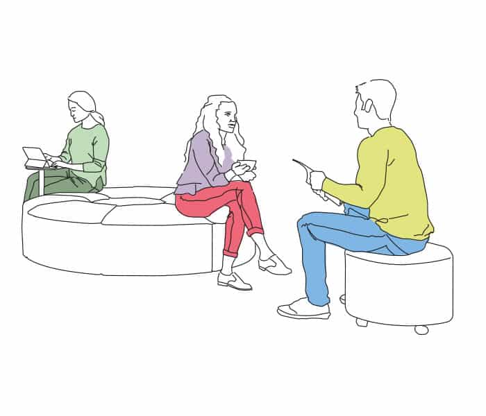 Tener una zona de socialización en el espacio de trabajo es crucial para desconectar. Un breve descanso para improvisar una charla es además sorprendentemente productivo. Tanto, que tenemos documentado que es en esos encuentros informales donde se producen las interacciones más valiosas entre equipos ¡hasta un 80%!
