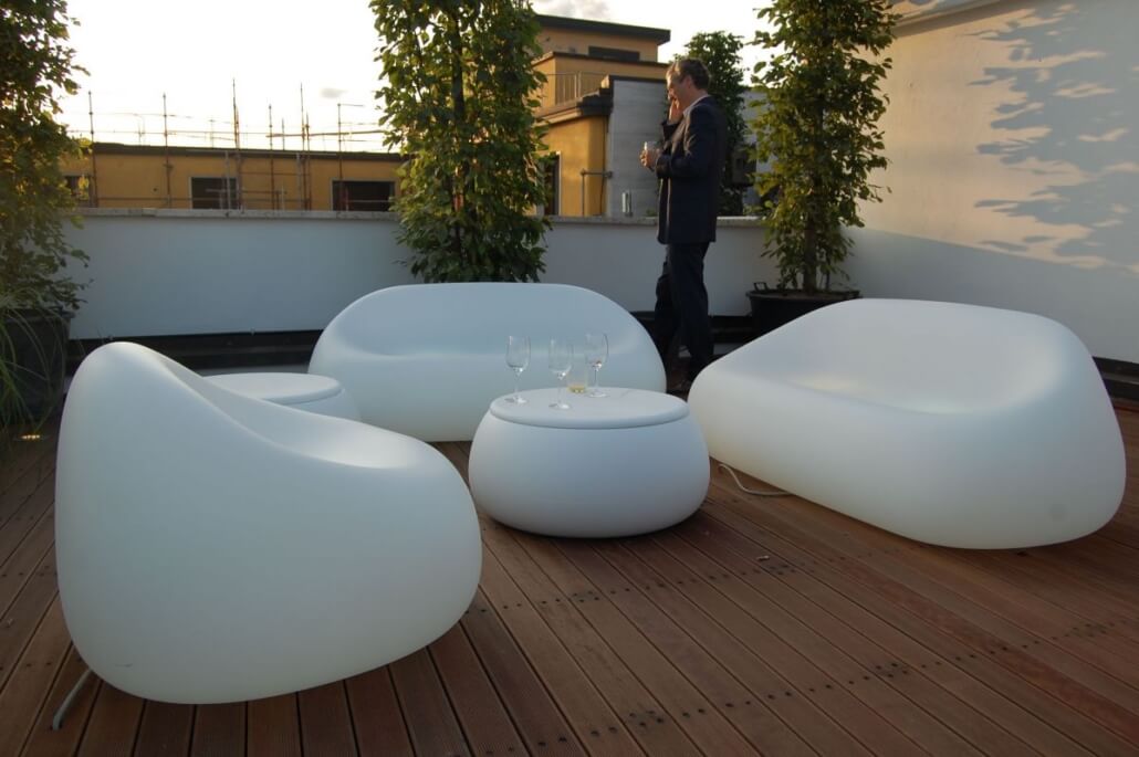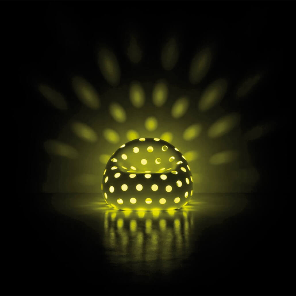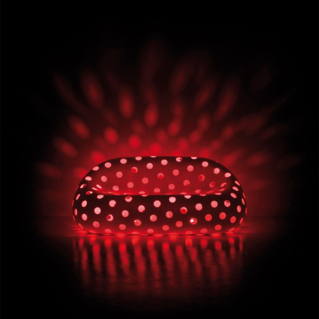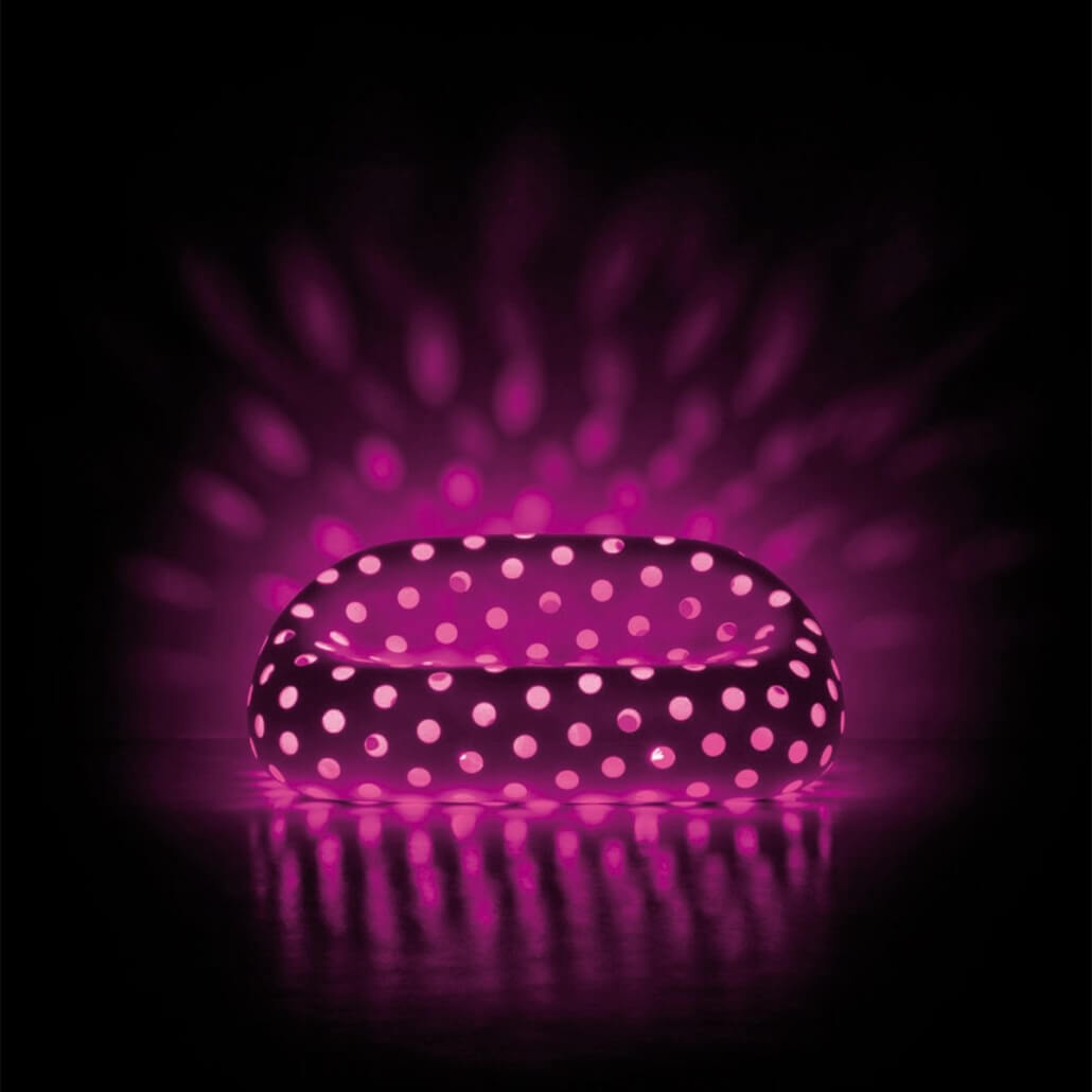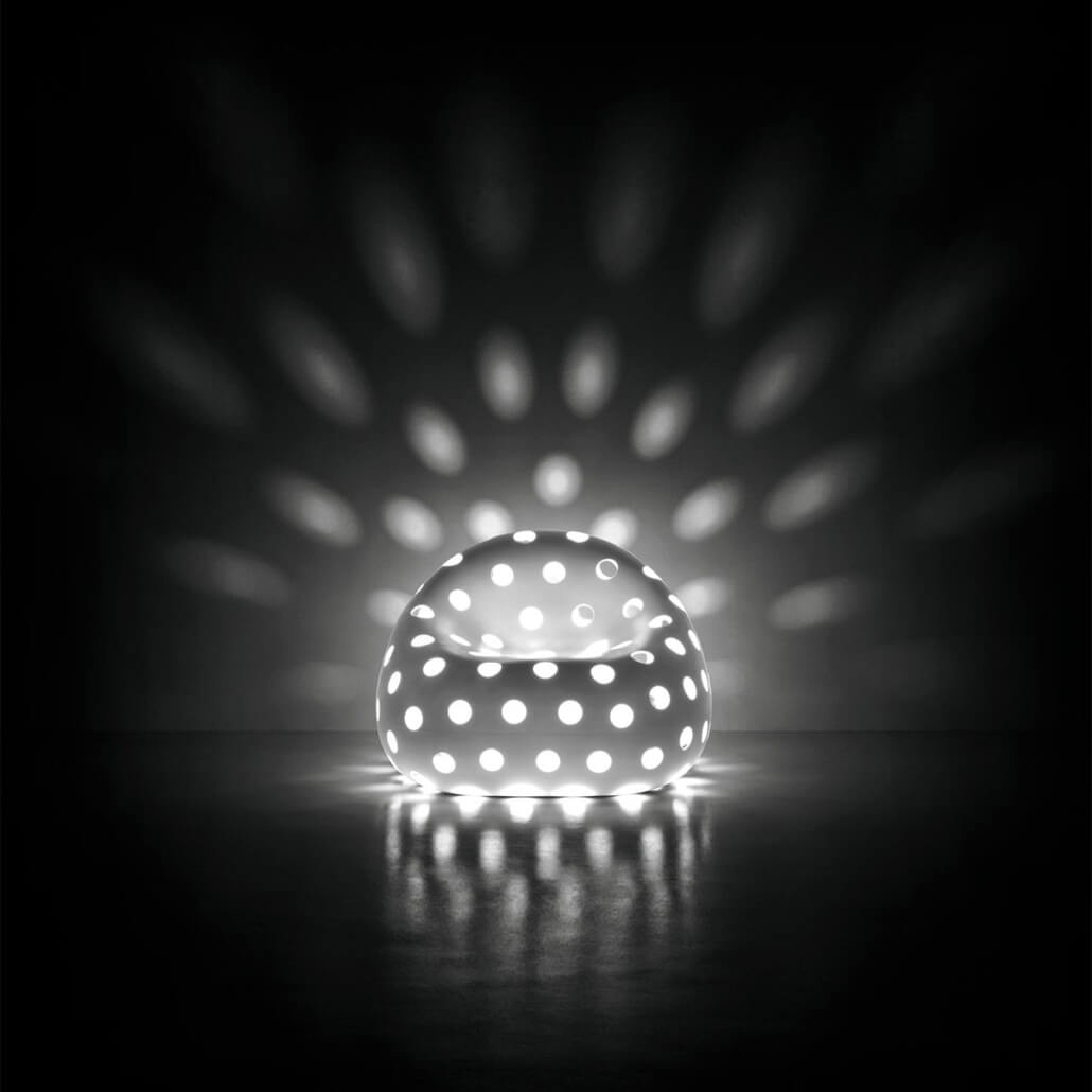 El sillón “Airball Armchair” y el sofá “Airball Sofa” descienden de la familia “Gumball”, de gran impacto escénico y adecuados para entornos que requieren soluciones de fuerte personalidad. La superficie perforada con “vacíos” otorga a los objetos una ligereza inédita para este tipo de muebles decorativos.