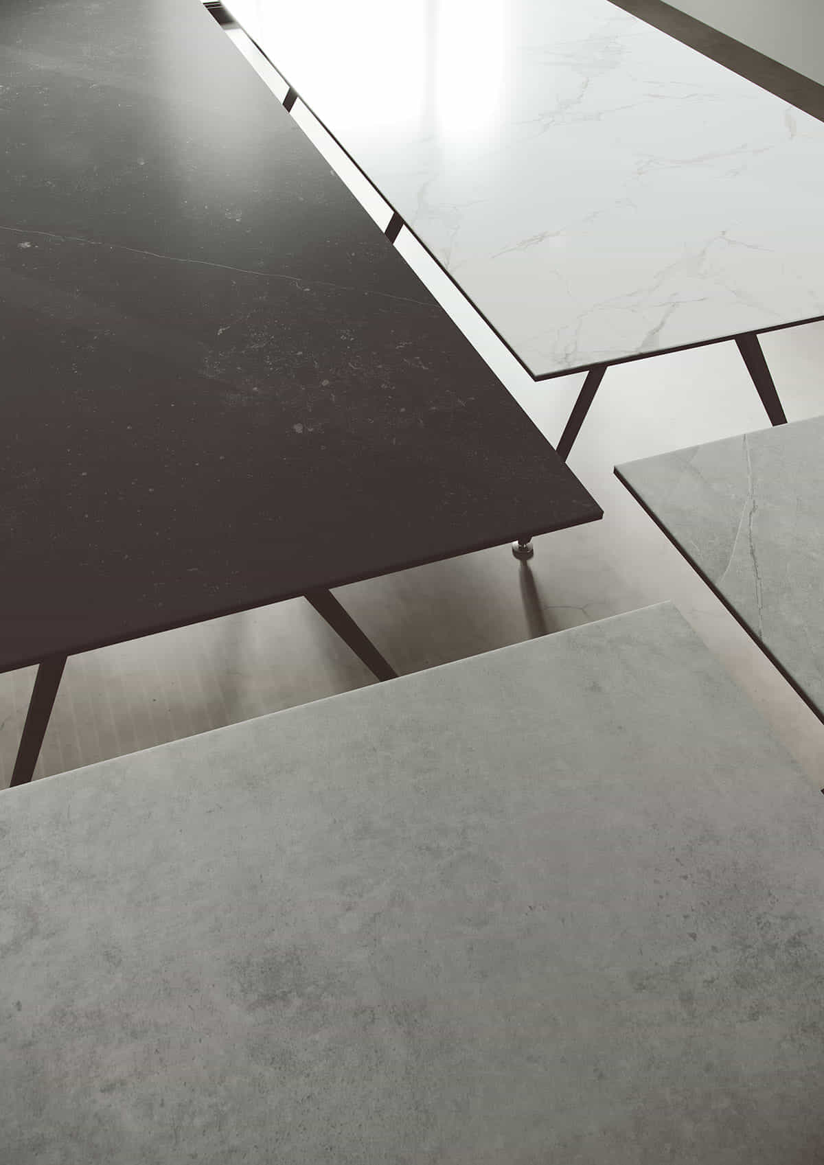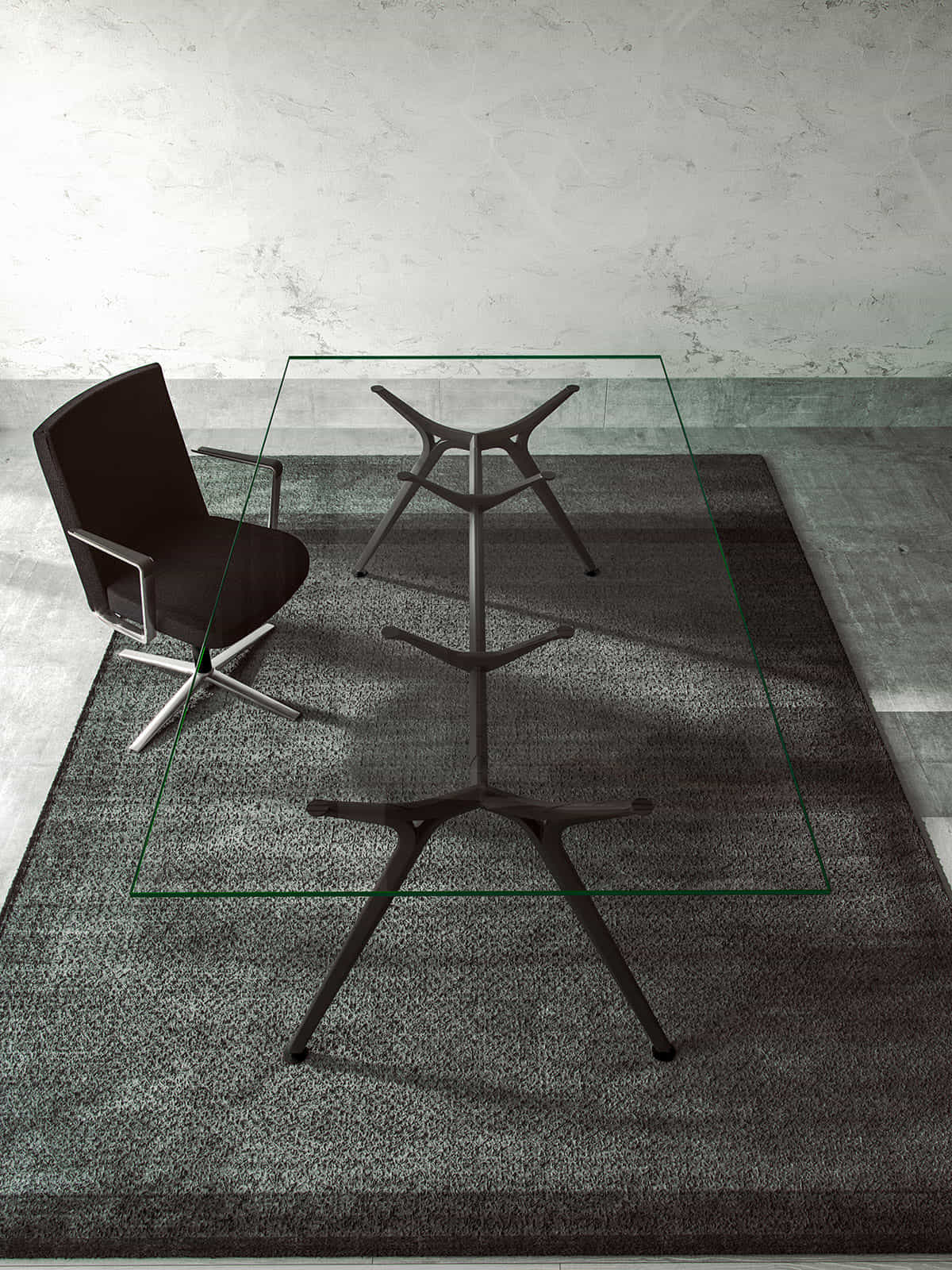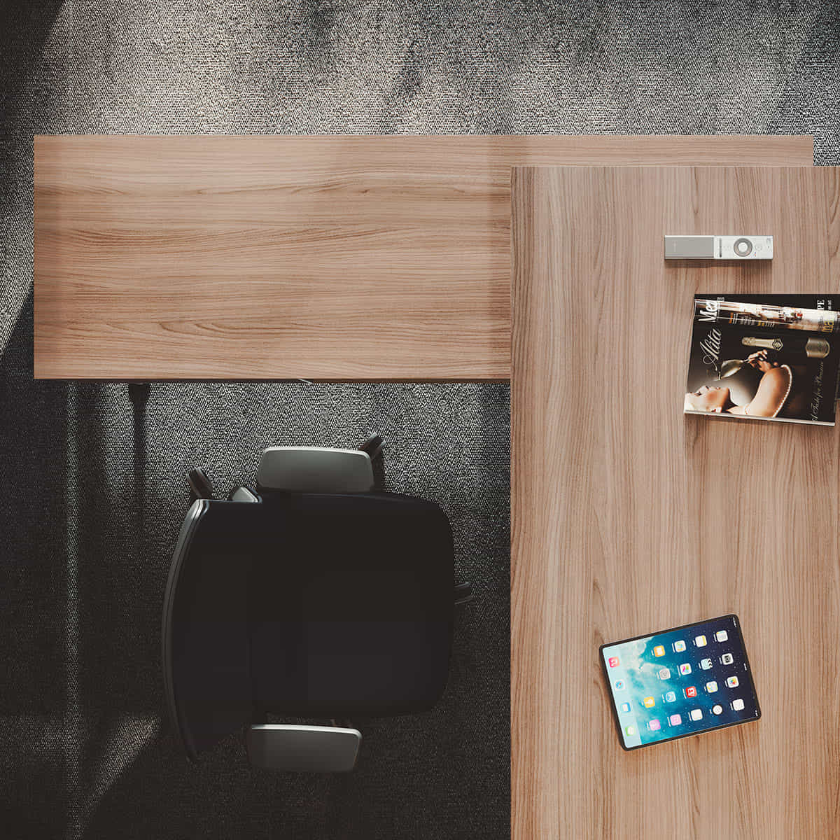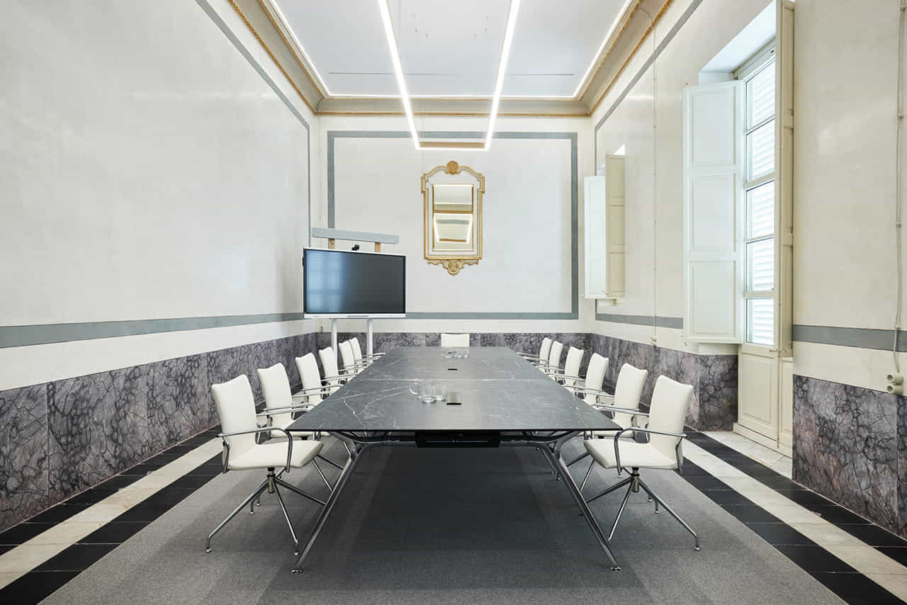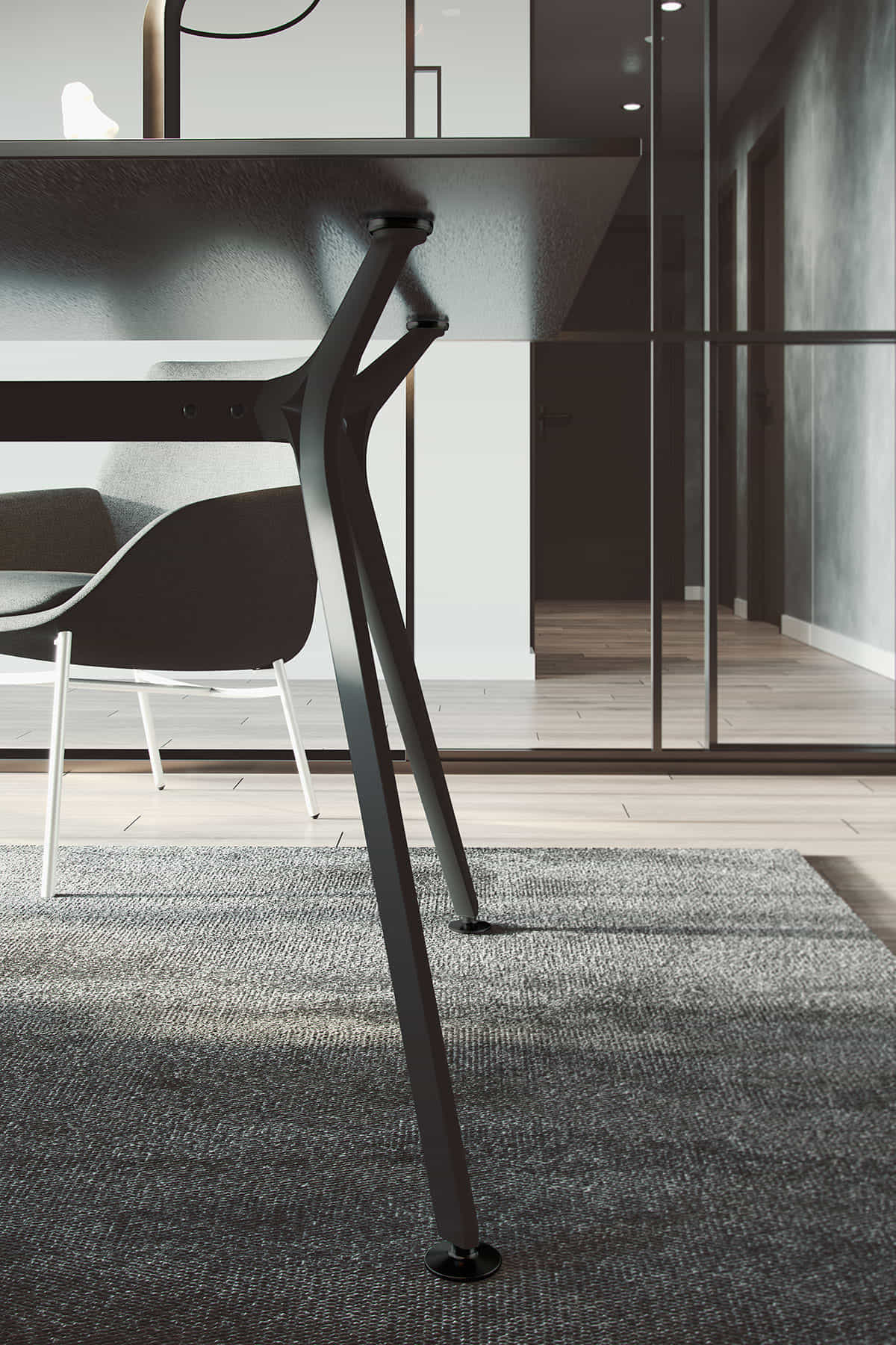 Su lado más vanguardista y exclusivo se demuestra en mesas de dirección ydespachos personales. Una estructura robusta que suspende en el aire un delgado plano de trabajo.