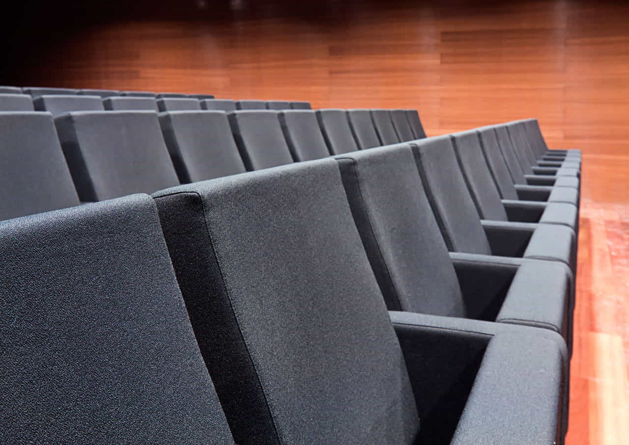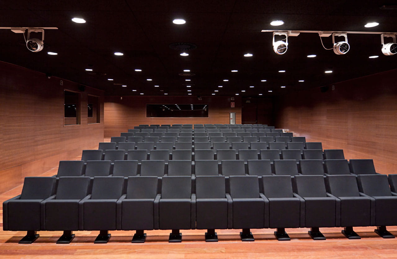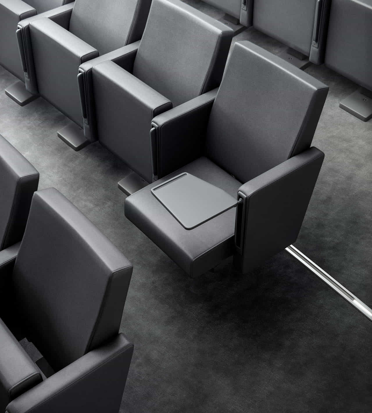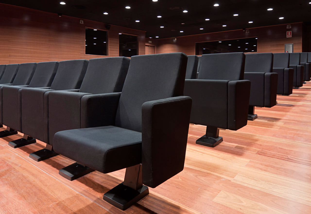 Butacas para auditorios, teatros, palacios de congresos y espacios multifuncionales. El programa ofrece una gama de medidas normalizada que permite, a su vez, desarrollar productos específicos para proyectos que lo requieran.