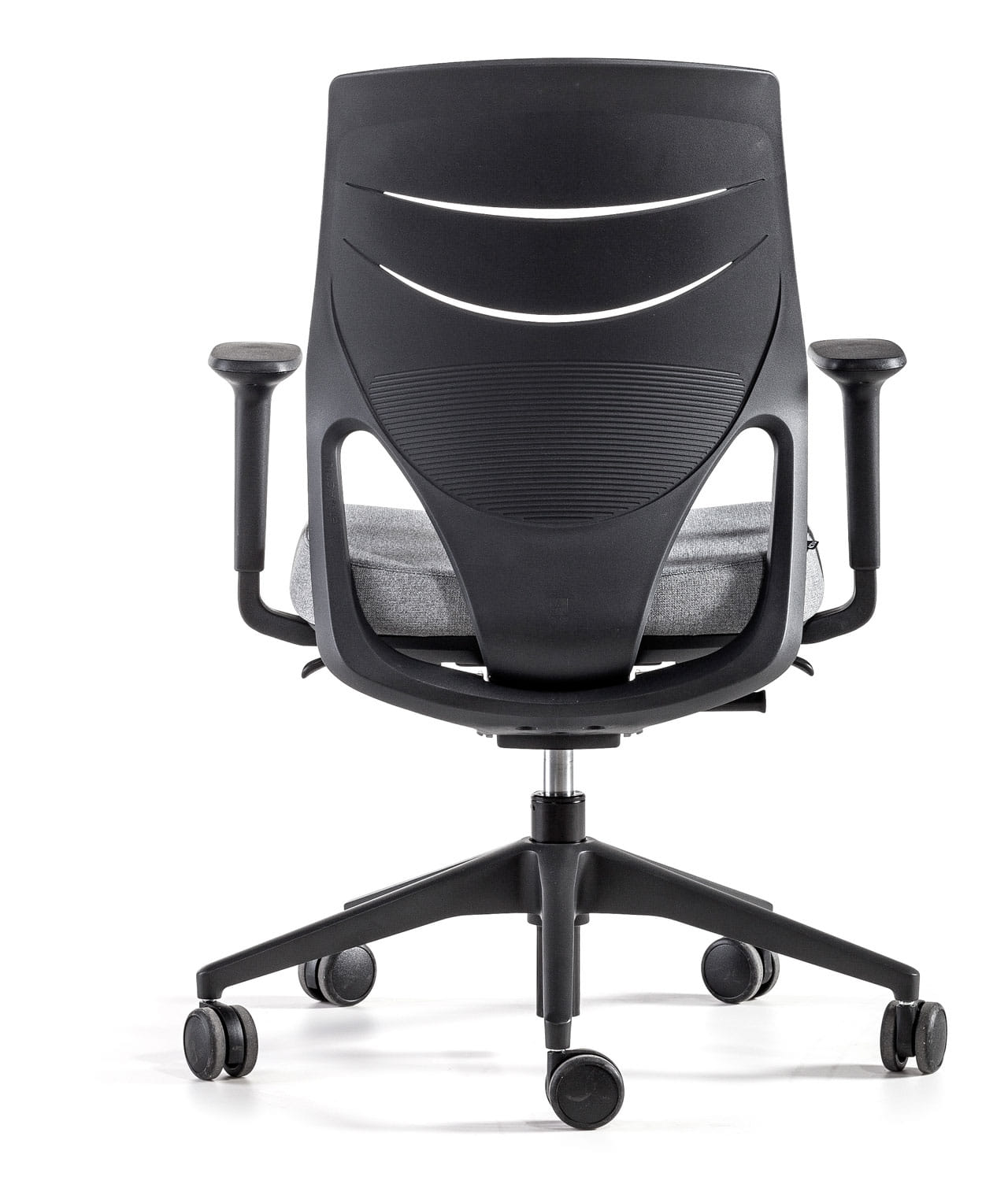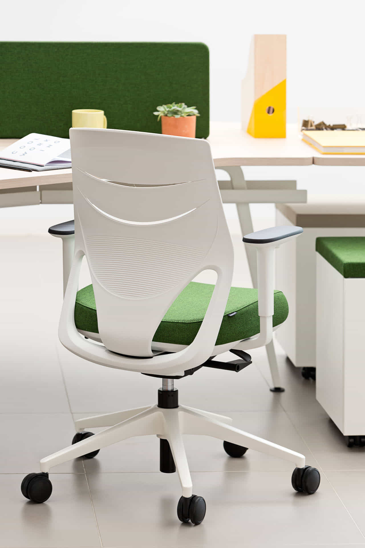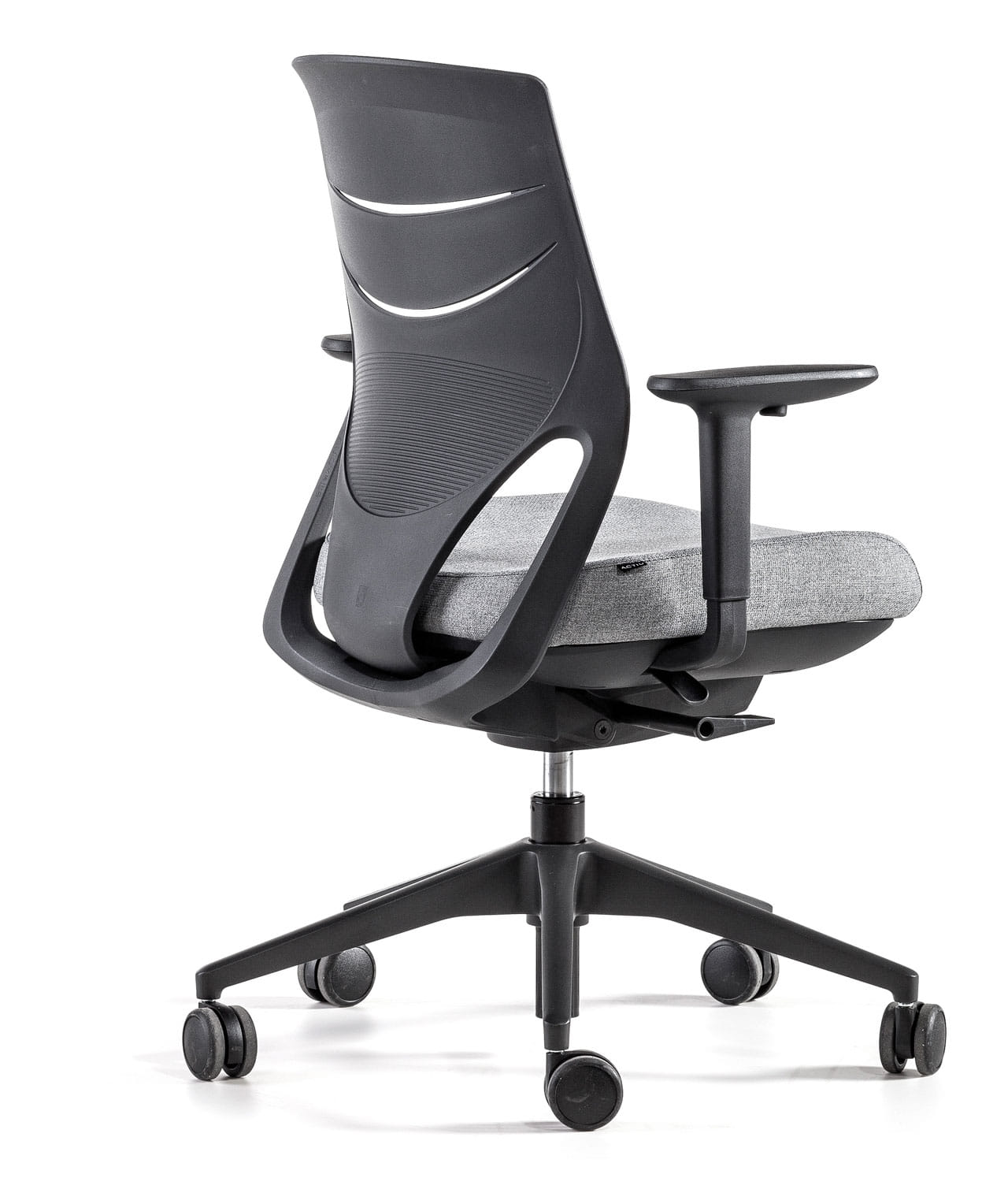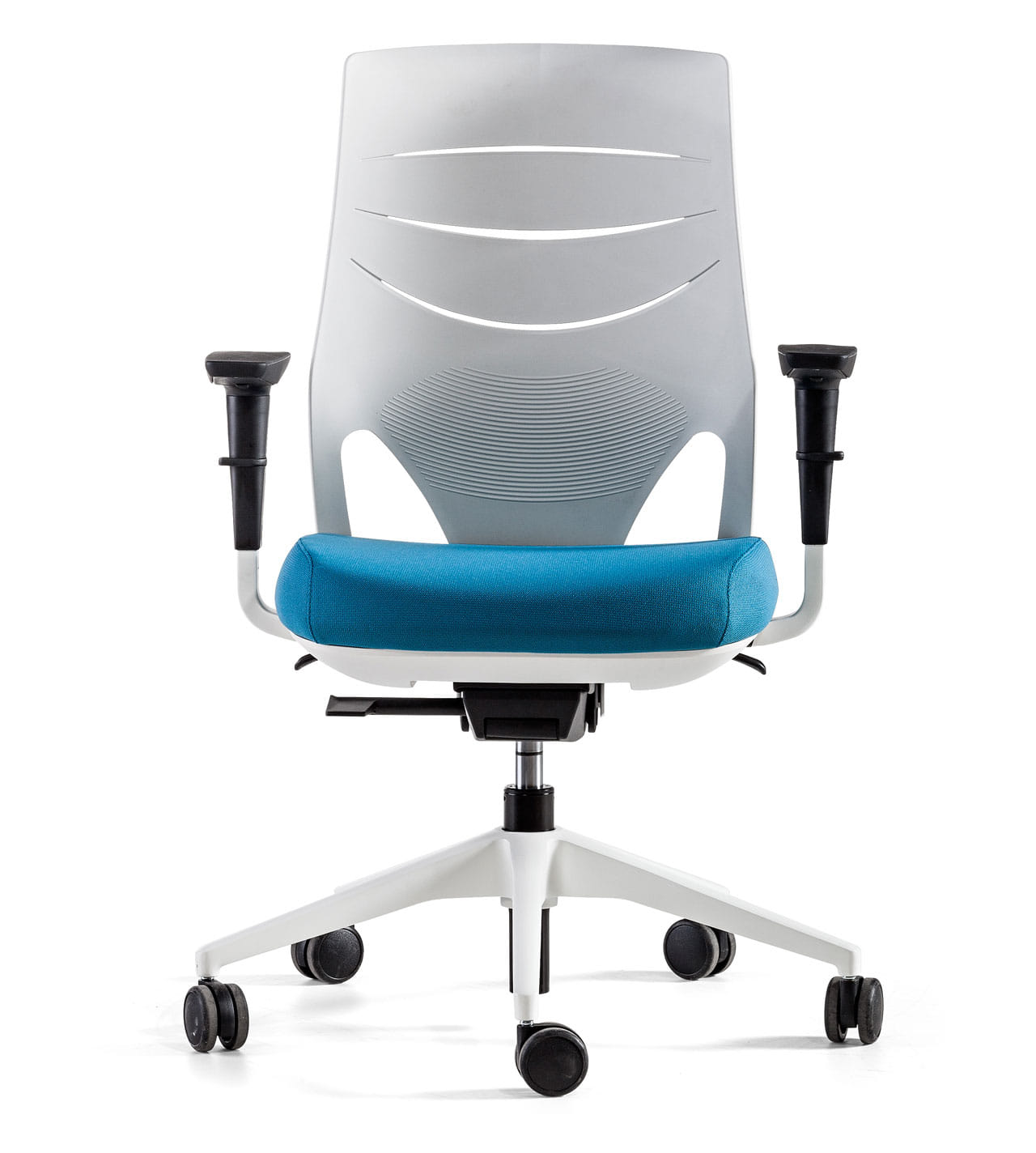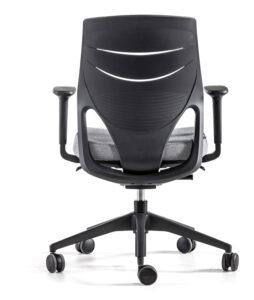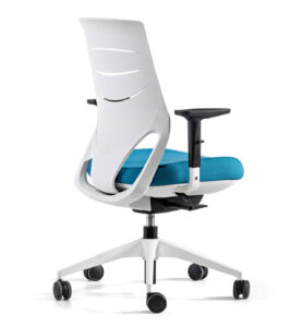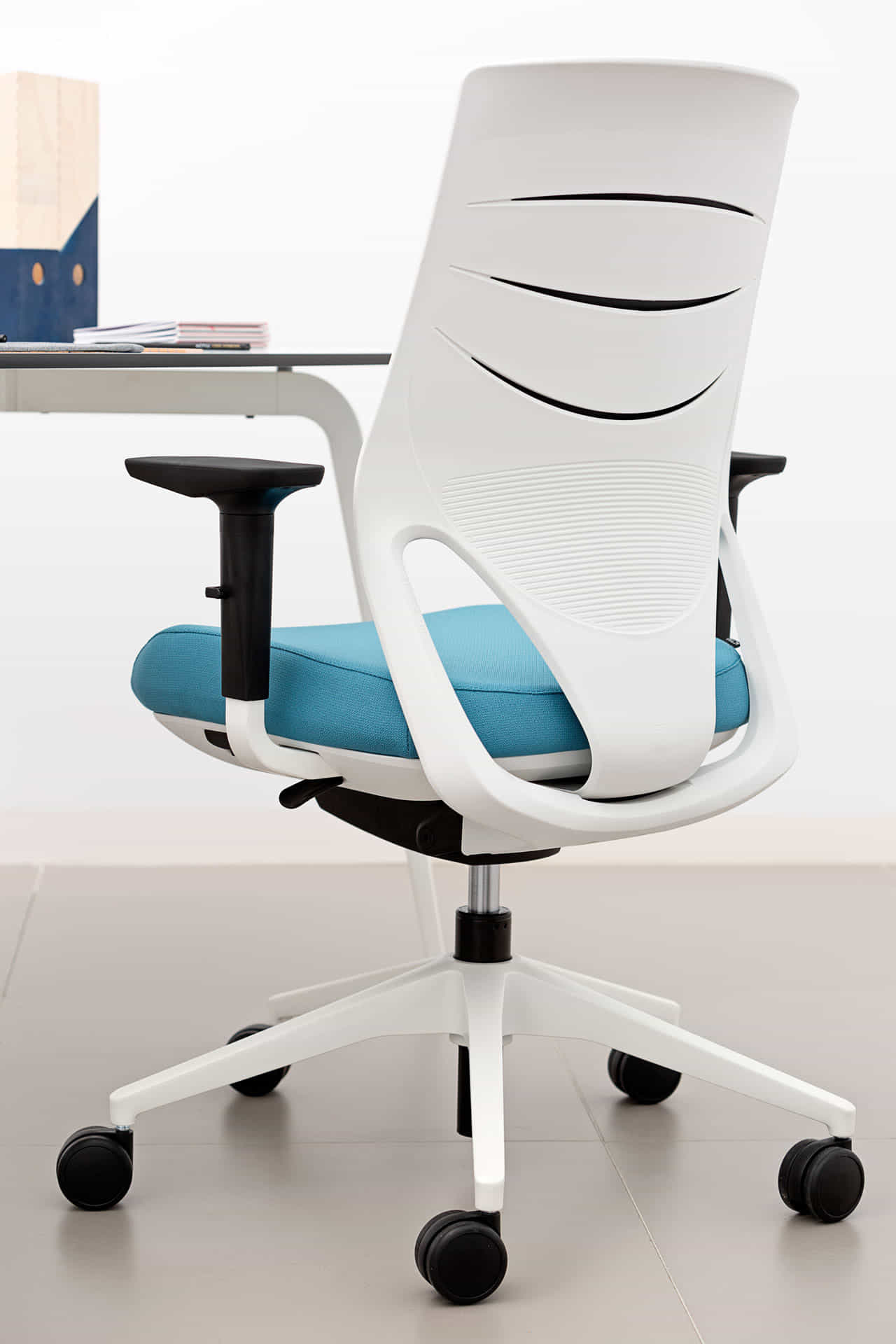 El innovador diseño del respaldo, fabricado en polipropileno y fibra de vidrio, permite una adaptabilidad al movimiento del usuario, complementado con el ajuste automático del refuerzo lumbar incorporado, que aporta un alto grado de confort.