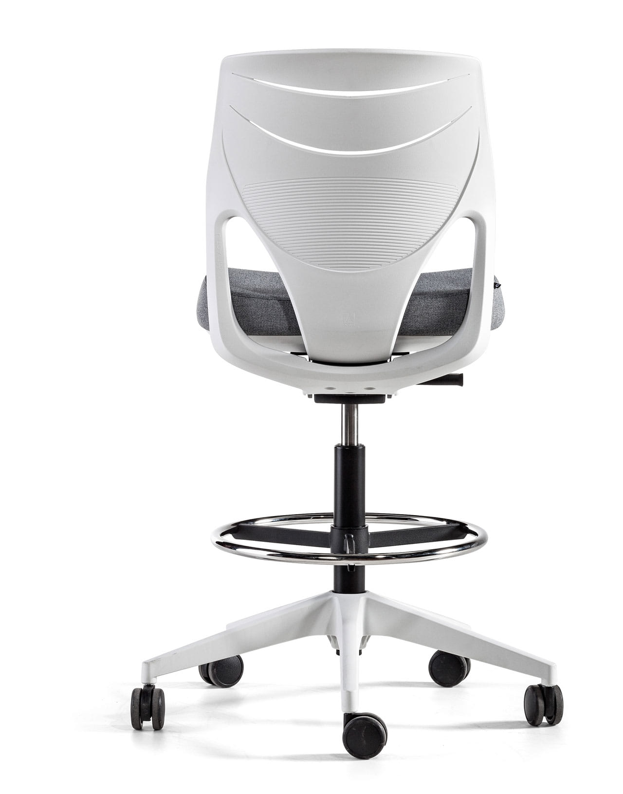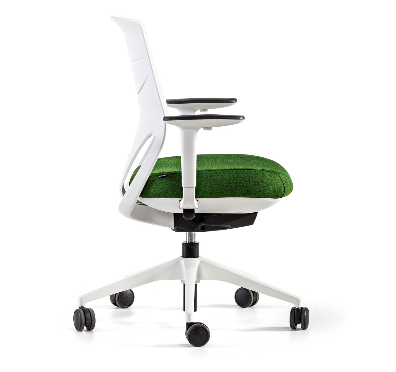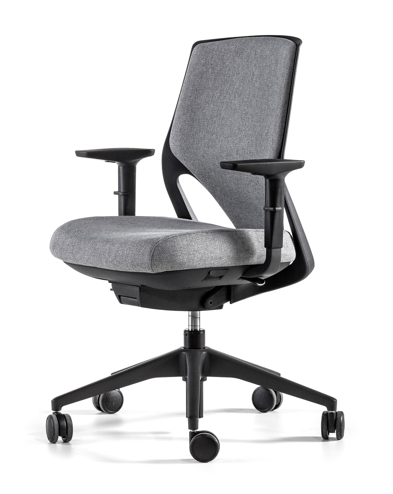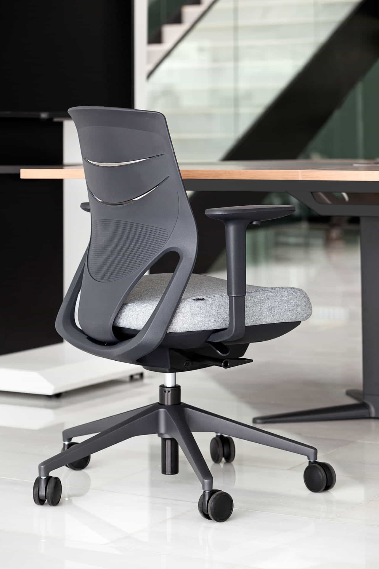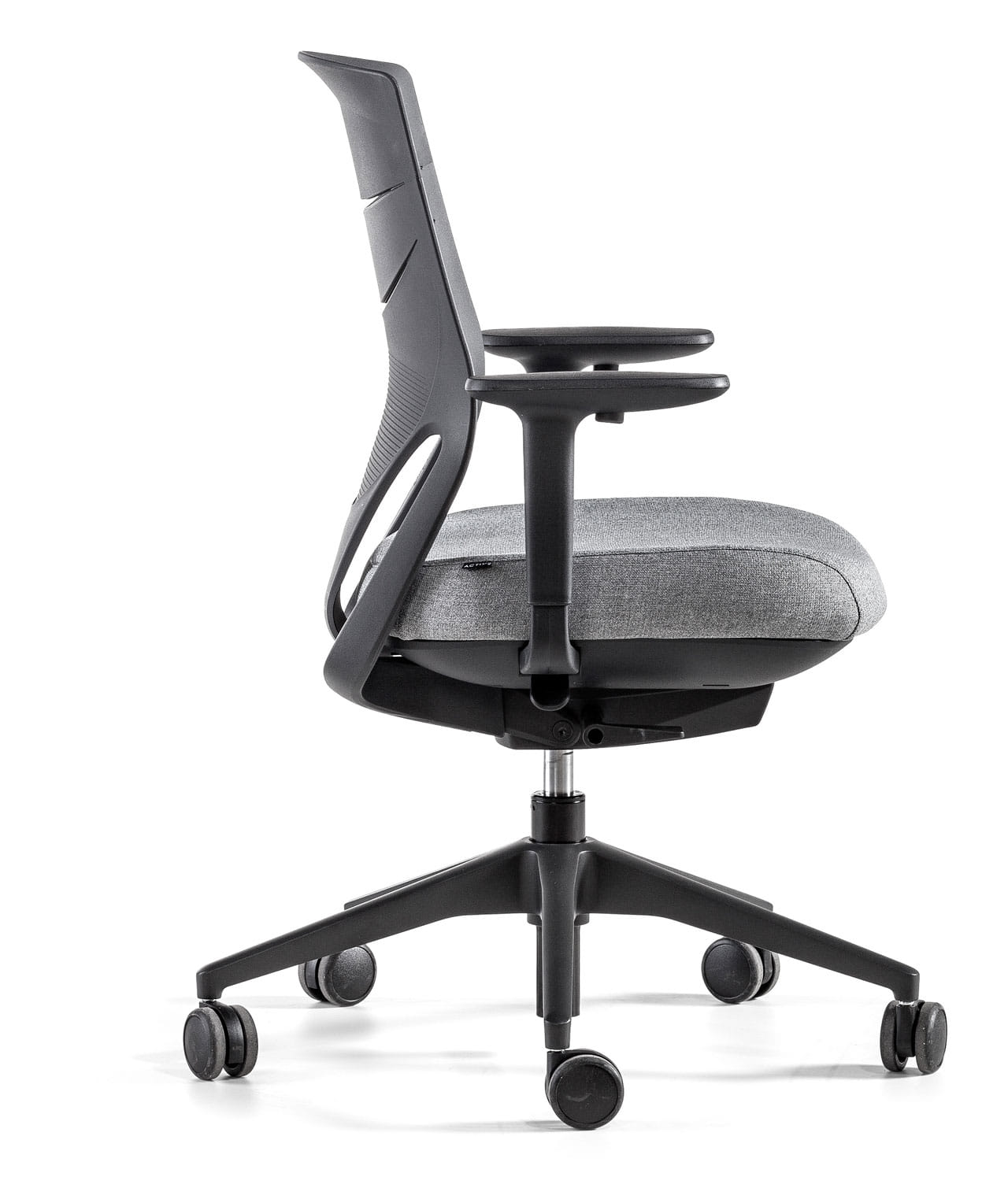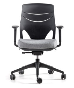 El innovador diseño del respaldo, fabricado en polipropileno y fibra de vidrio, permite una adaptabilidad al movimiento del usuario, complementado con el ajuste automático del refuerzo lumbar incorporado, que aporta un alto grado de confort.