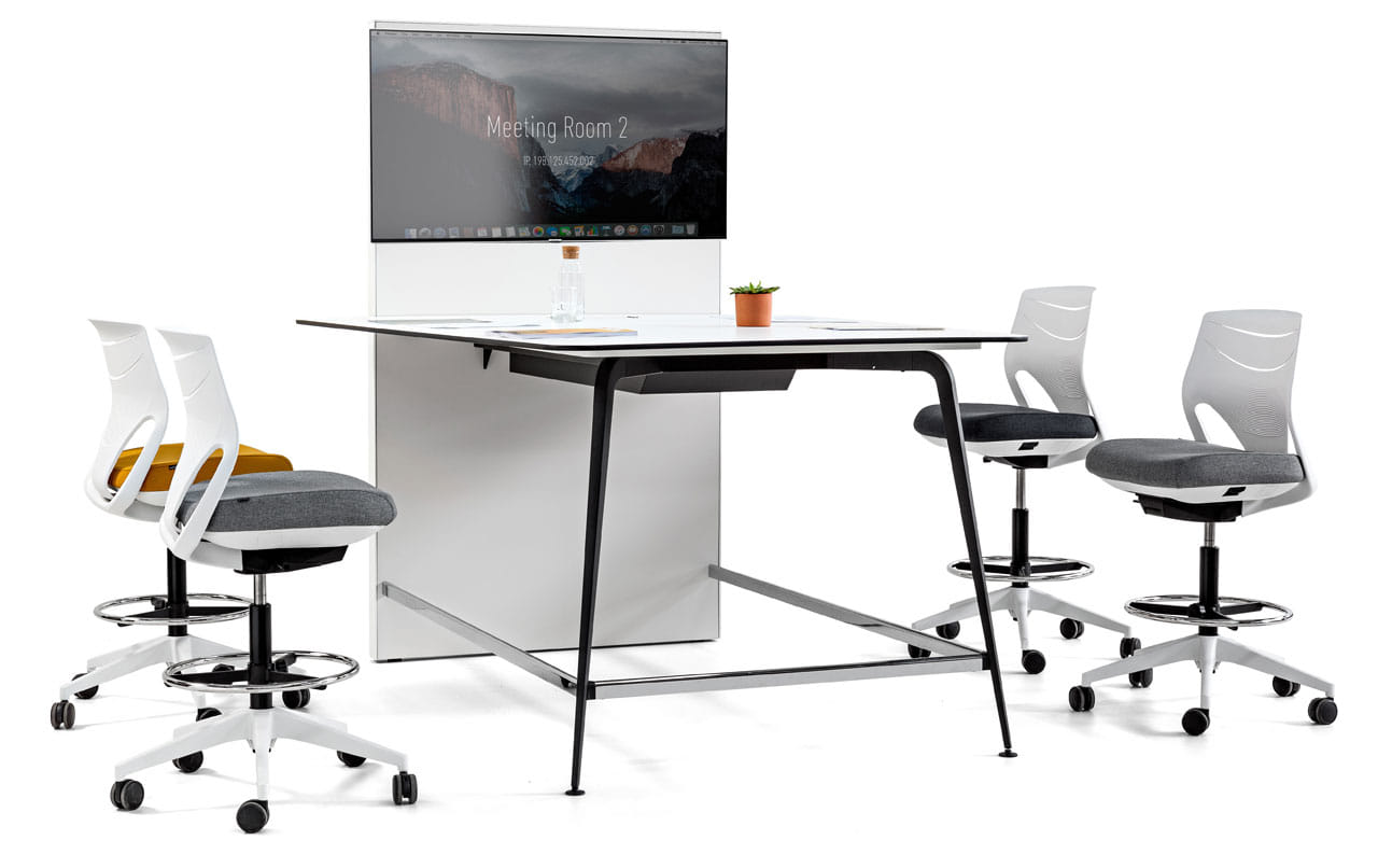 La banqueta Efit confiere una solución ideal para reuniones en altura. Su asiento ACS proporciona un reparto de peso equivalente gracias a la espuma de poliuretano con cámaras de aire que incorpora.