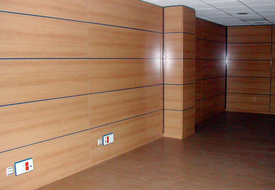 Con el fin de ofrecer un acabado uniforme en toda su oficina, MECUX ofrece la posibilidad de forrar las paredes de obra con los mismos materiales que el resto de las divisiones, quedando su oficina mucho más vistosa y elegante.