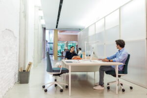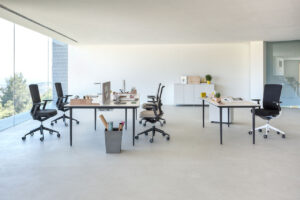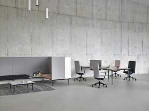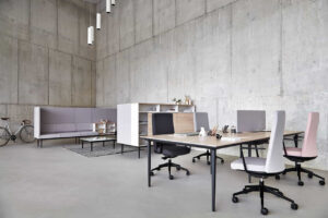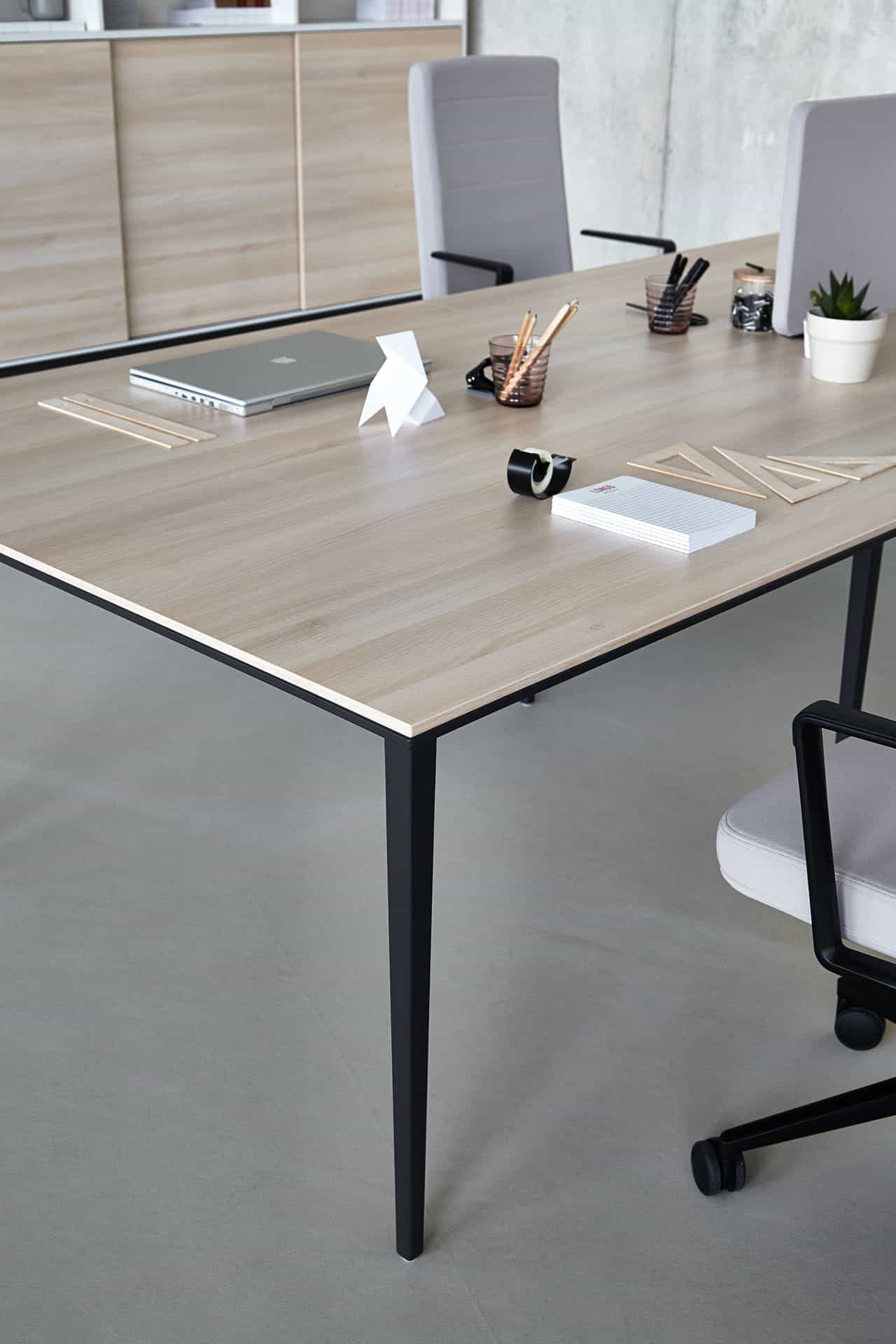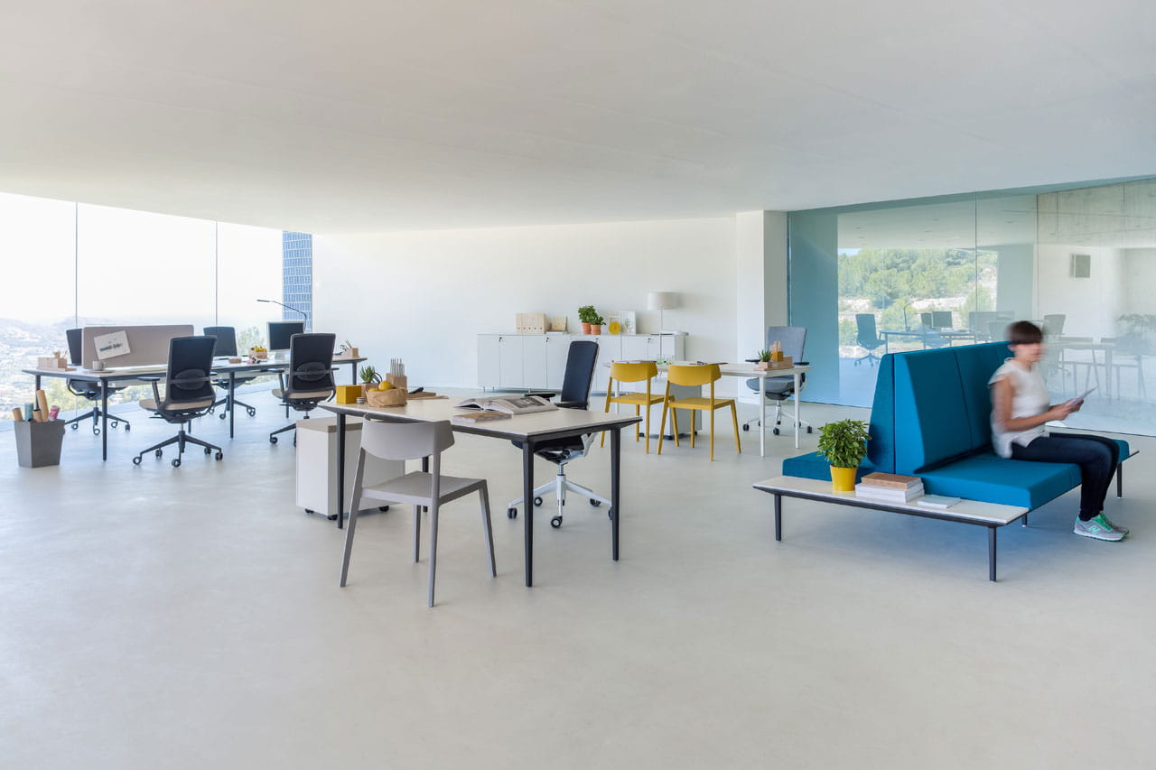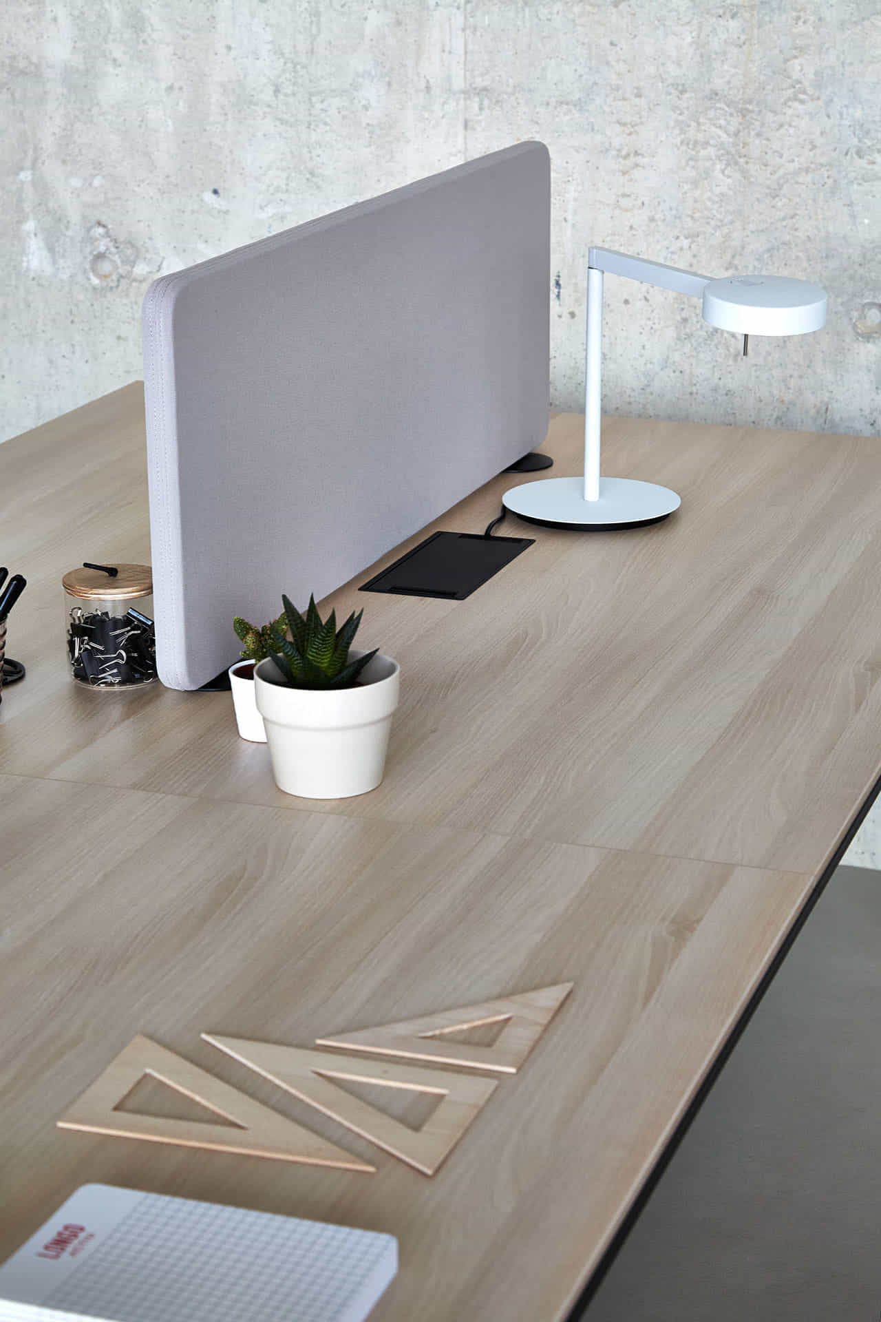 El sistema modular de mesas Longo permite integrar mobiliario y accesorios en una misma plataforma, creando espacios originales, armoniosos y despejados.