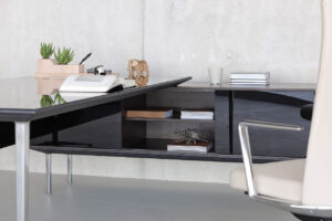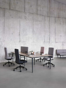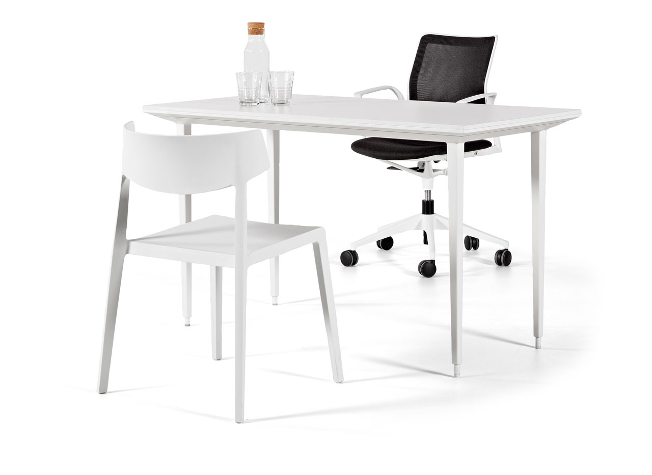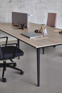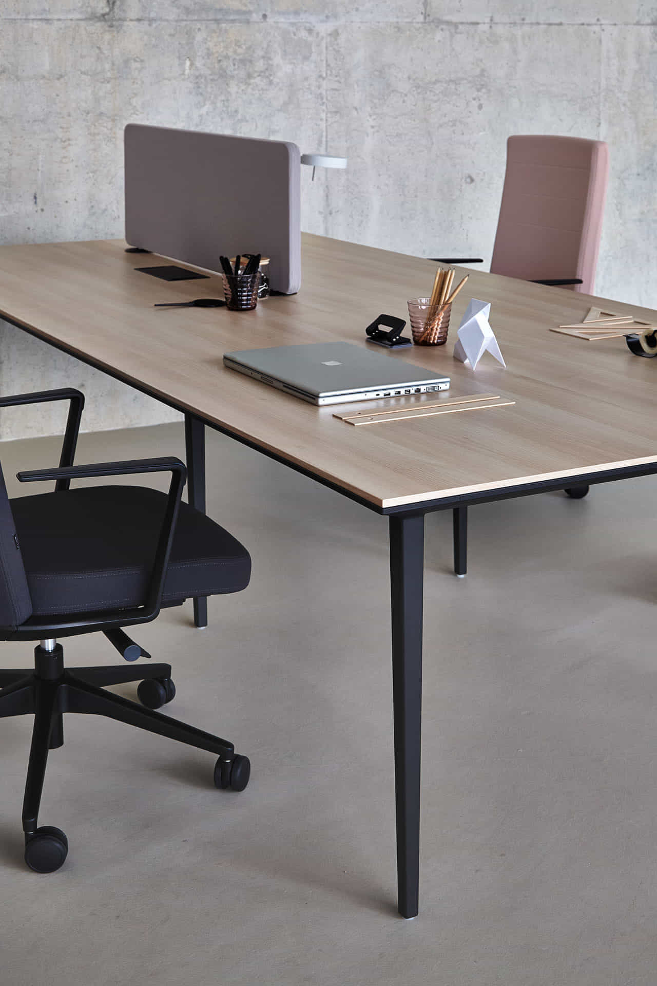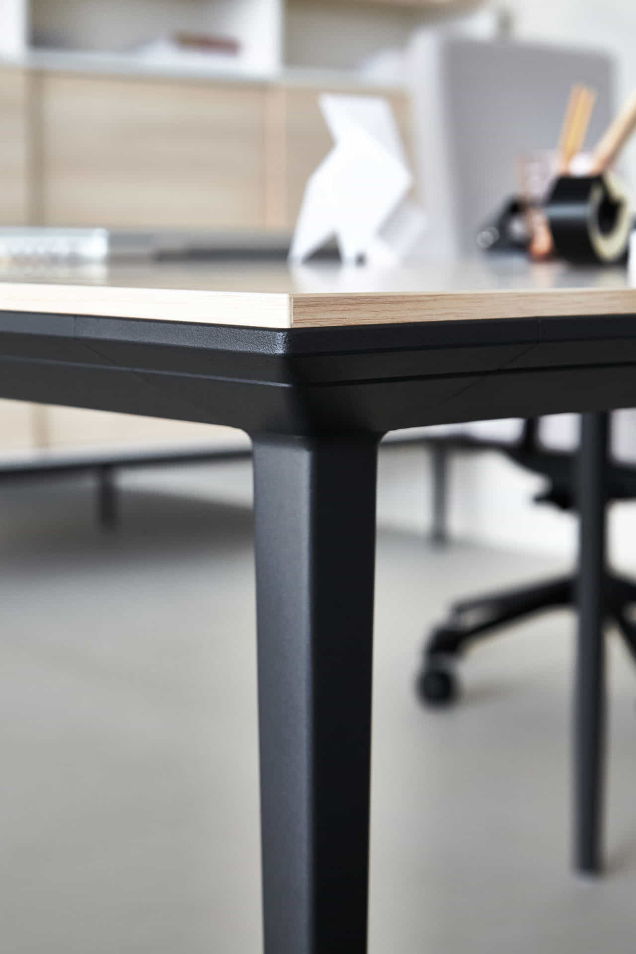 Las mesas Longo, disponibles tanto para soluciones operativas como para dirección, combinan el aluminio extrusionado de la estructura, con la inyección de aluminio de las patas y puntos de unión. La elección de este material junto con su diseño, le otorgan un aspecto ligero, suave y coherente con el resto de elementos con los que se fusiona: armarios, librerías, sofás o divisorias fornoabsorbentes.