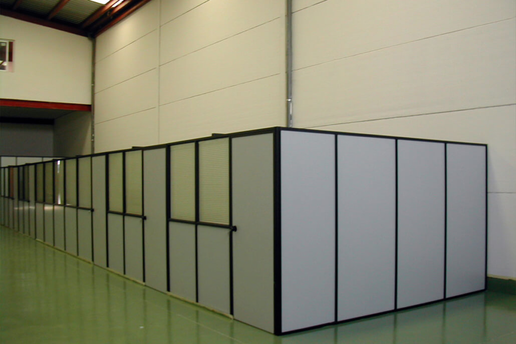 ROMBO, es ideal para la separación de múltiples dependencias funciones, instalándolas sobre todo en Naves Industriales, Almacenes o Talleres.