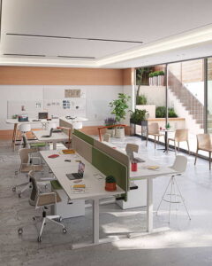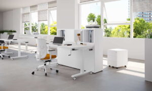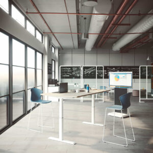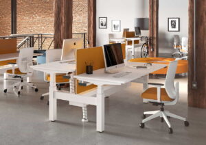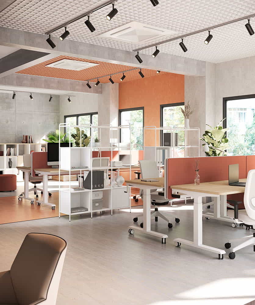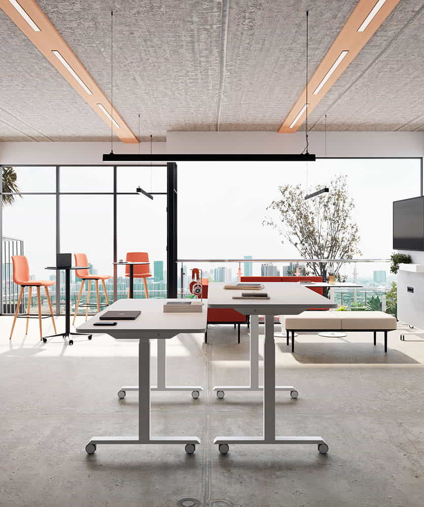 Mobility es un programa de mesas elevables que establece nuevos estándares en el mundo de la oficina. El programa consiste en la combinación de diversas soluciones de regulación de altura en mesas individuales y dobles, ofreciendo una amplia gama de tapas que permiten componer el espacio de trabajo deseado, para adaptarse a las necesidades de cada usuario.