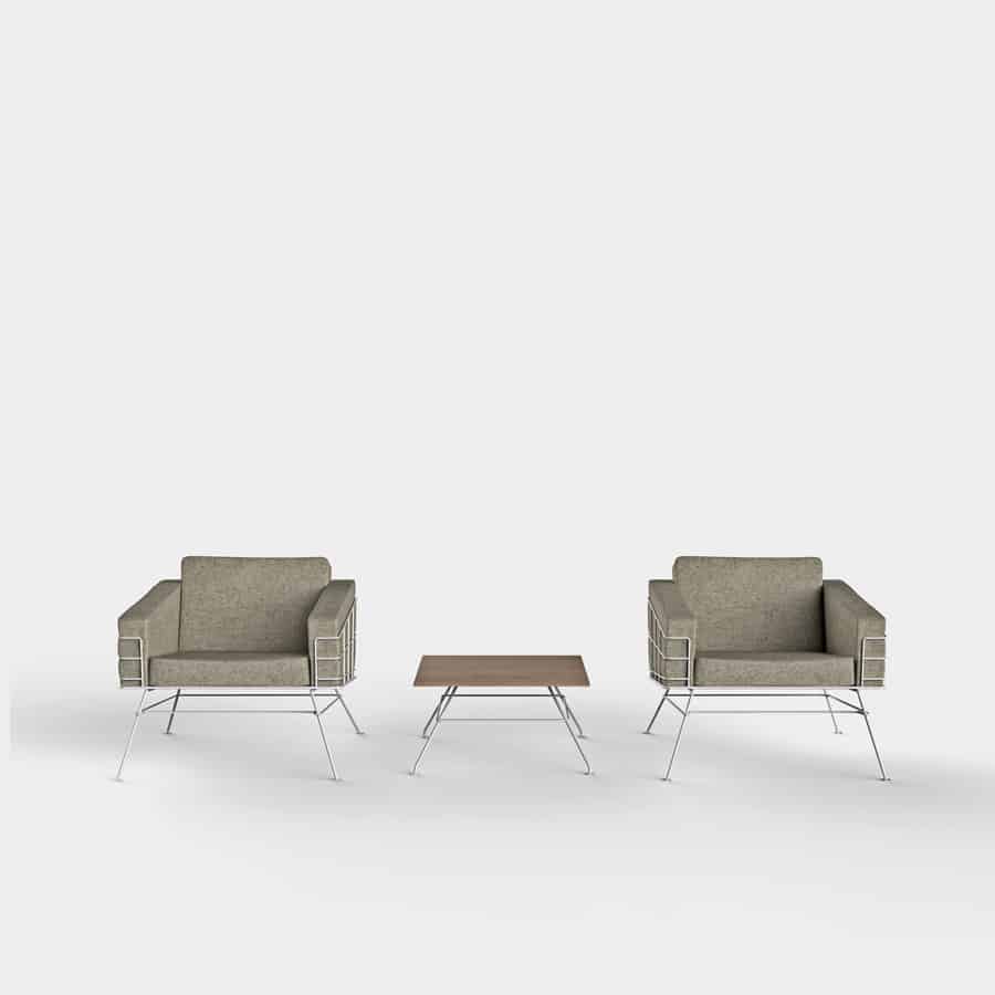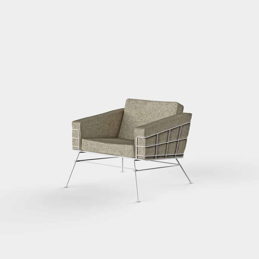 Inspirada en las estructuras de refuerzo típicas en la construcción civil, el sillón Quadrata se resume a un conjunto de cuatro cojines sueltos abrazados por una estructura minuciosamente desarrollada en barra metálica. De hecho, un producto diferente de lo habitual, con un enfoque nuevo para el ámbito.