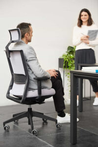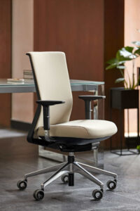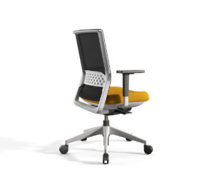 Silla global, cercana y competitiva en el mercado, con una amplia capacidad de moldeabilidad, diseñada con un nuevo sistema syncro inteligente que se adapta de forma automática al peso del usuario, y cuyo respaldo, de rejilla transpirable, permite un uso más prolongado.