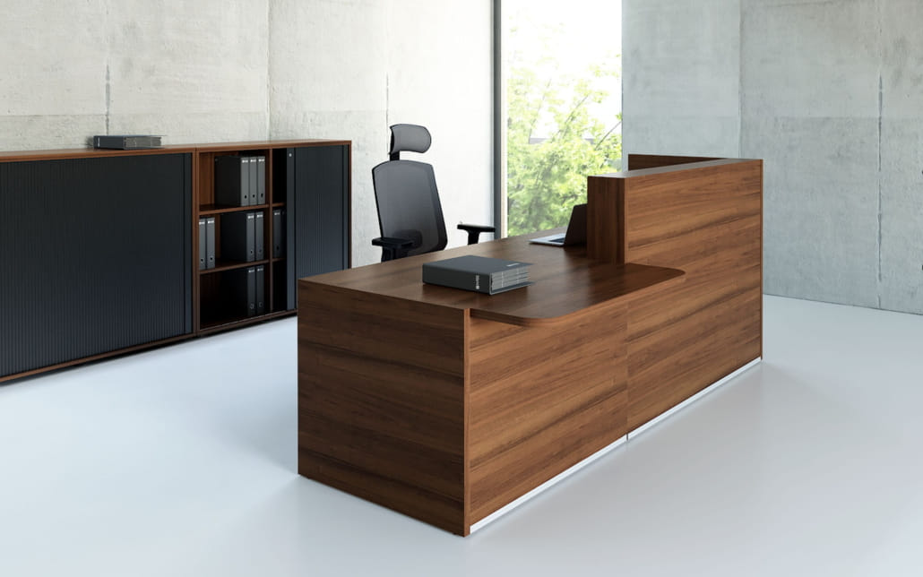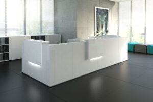 Los mostradores bajos sobresalientes facilitan un contacto más cercano y ayuda a personas con movilidad reducida. Tera es la opción perfecta en oficinas y vestíbulos de hoteles donde el mostrador enfatiza discretamente el alto valor del servicio.