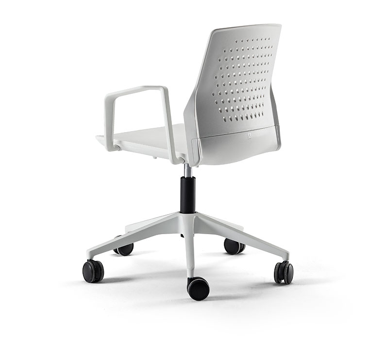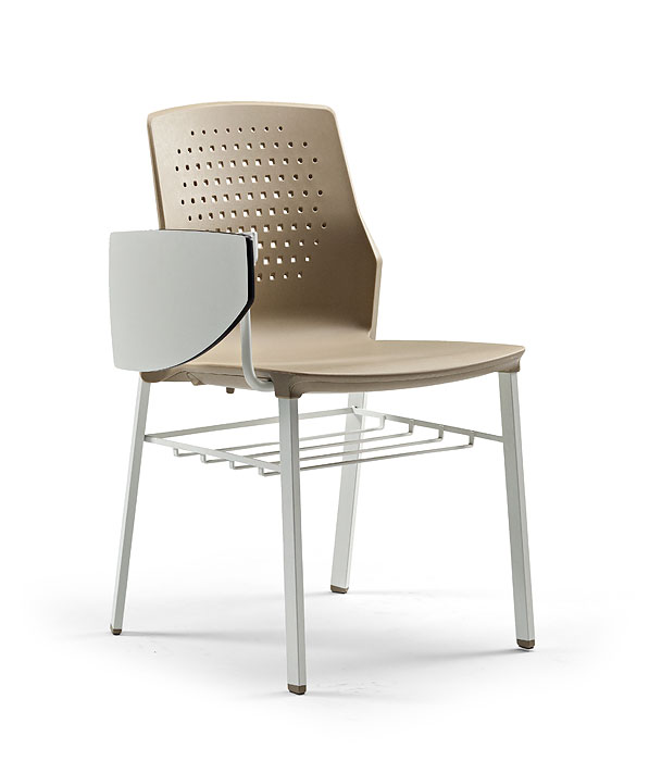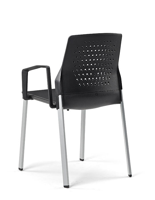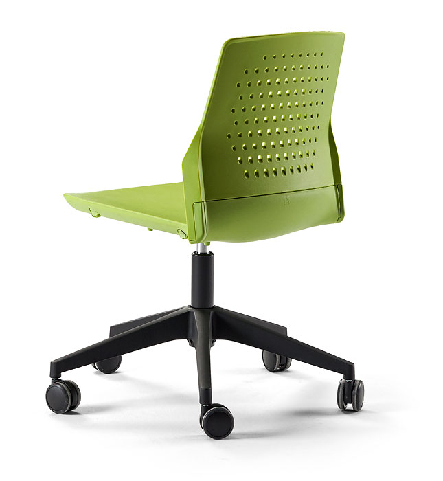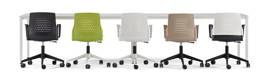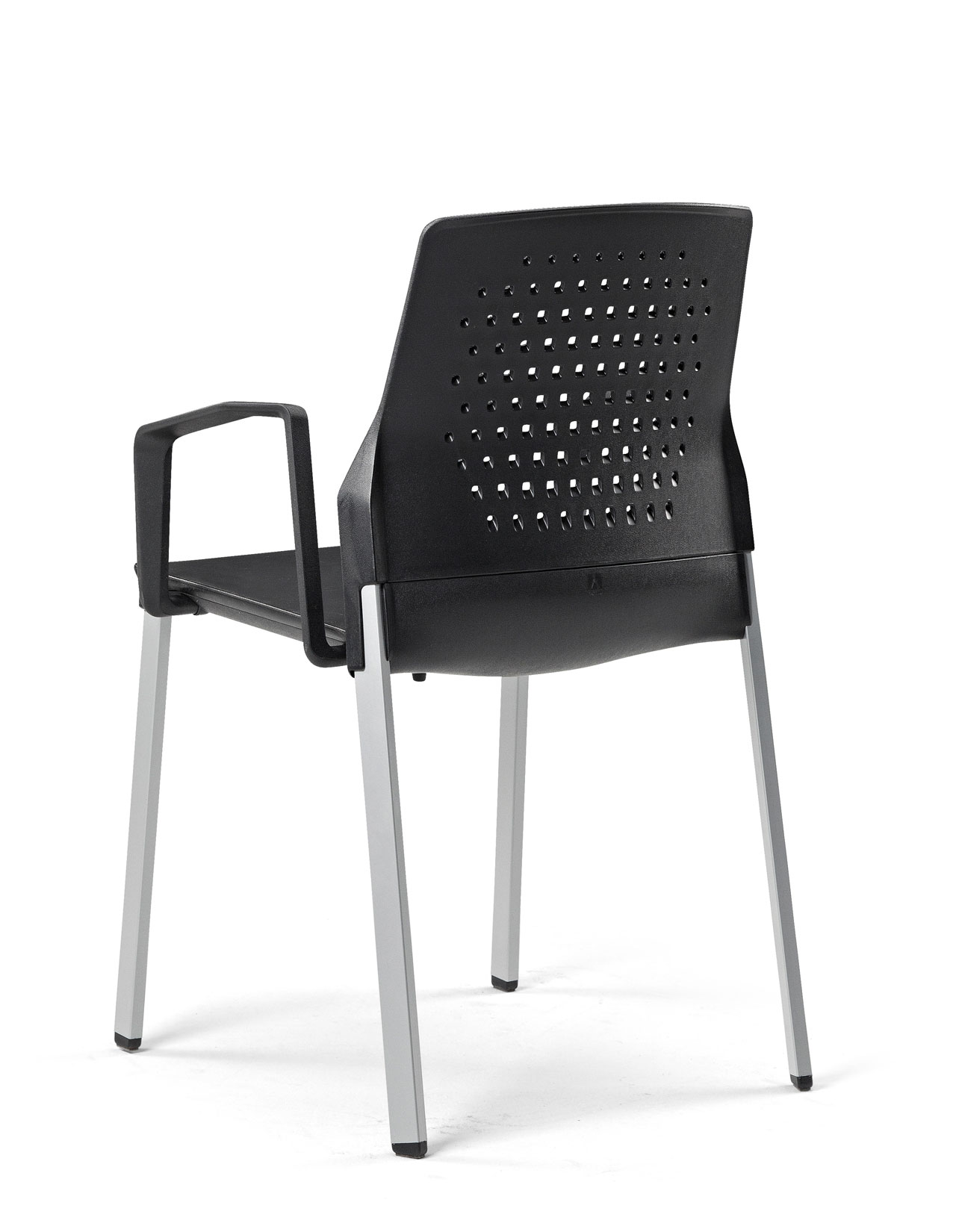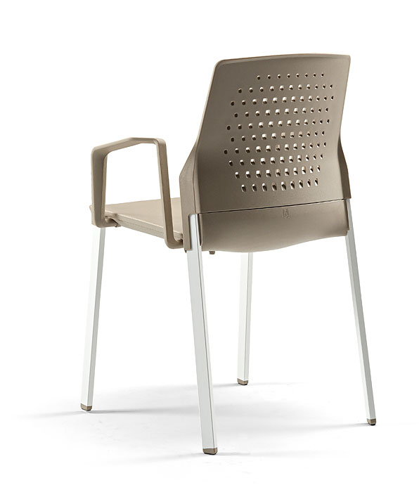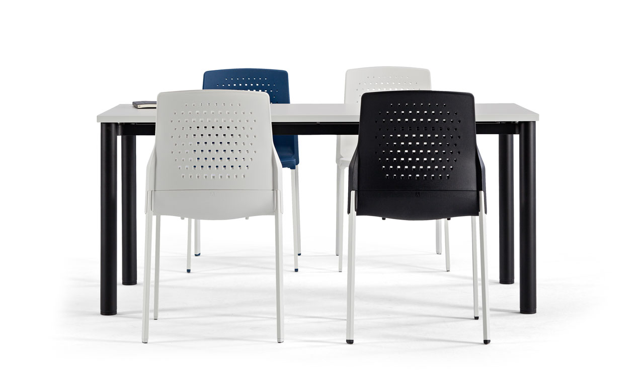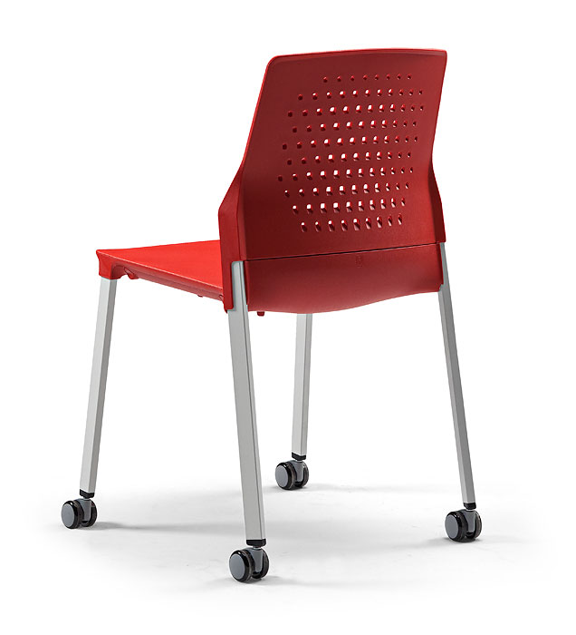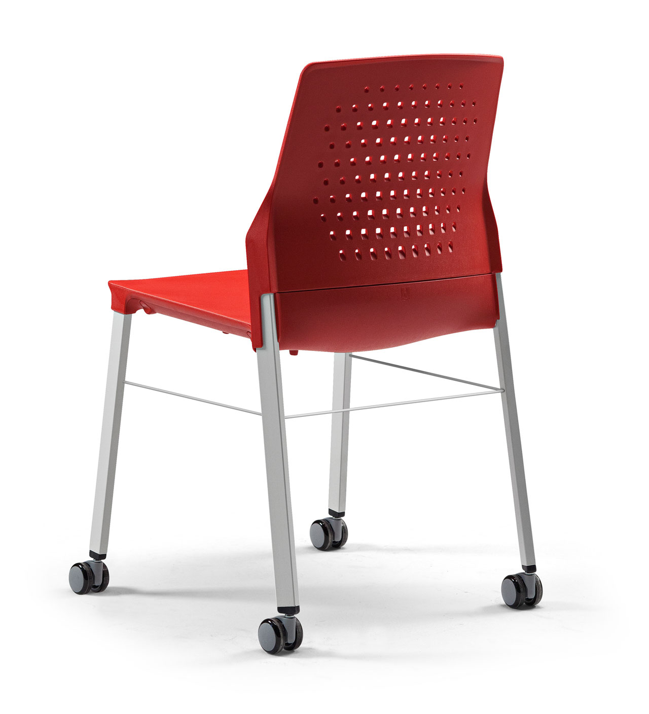 Silla versátil, ligera y de fácil almacenamiento, de líneas fluidas y vanguardista, montada sobre una estructura metálica que se adapta a cualquier necesidad de uso. Su textura transpirable aporta una perfecta sujeción lumbar.