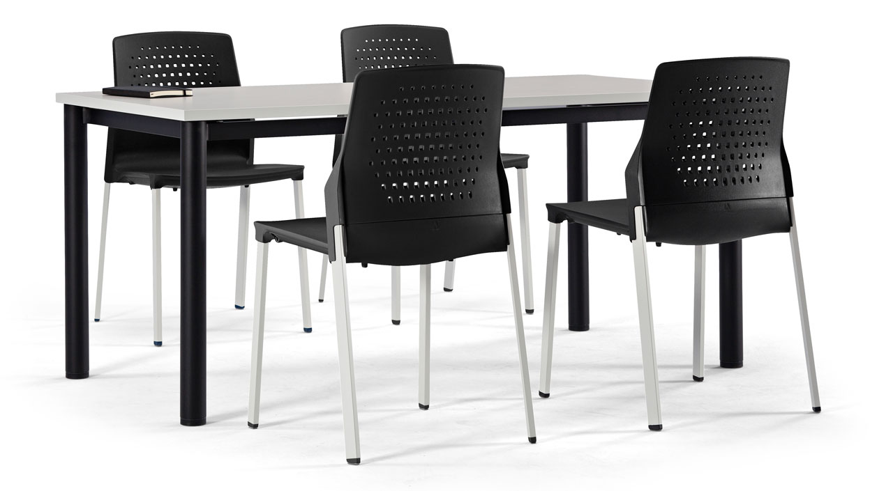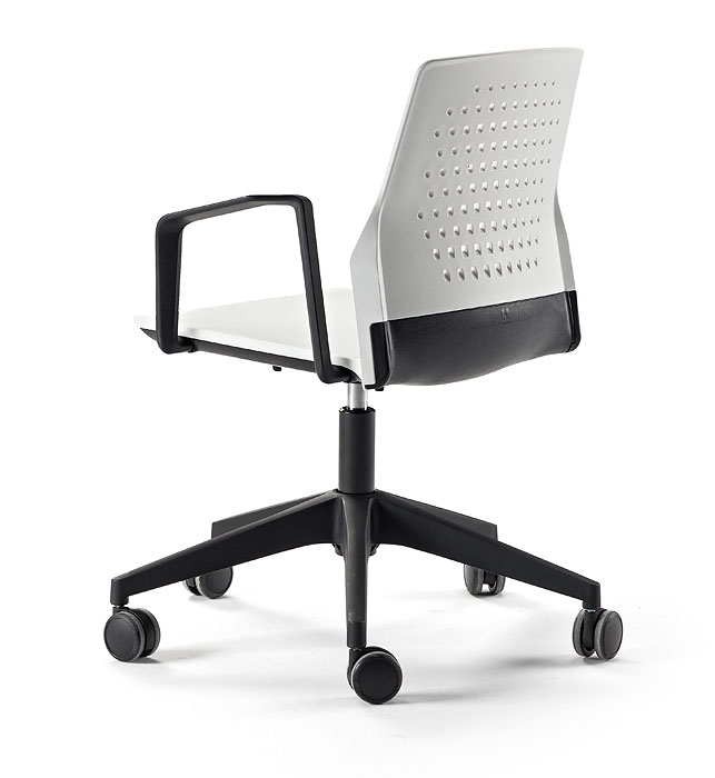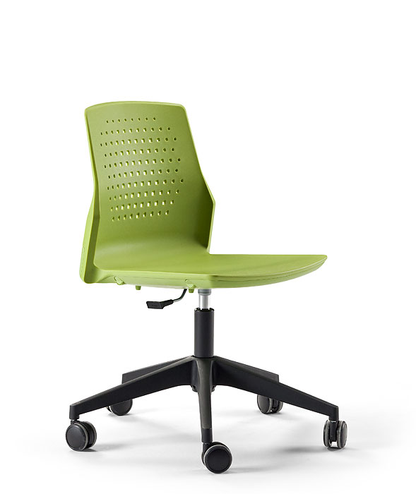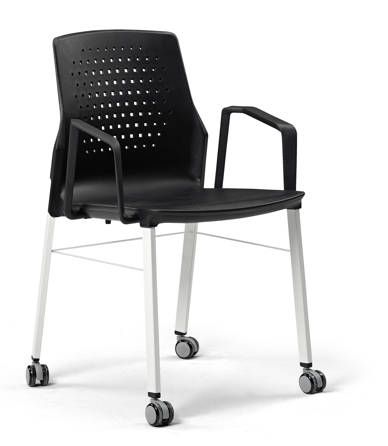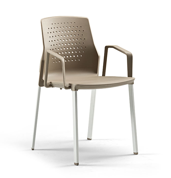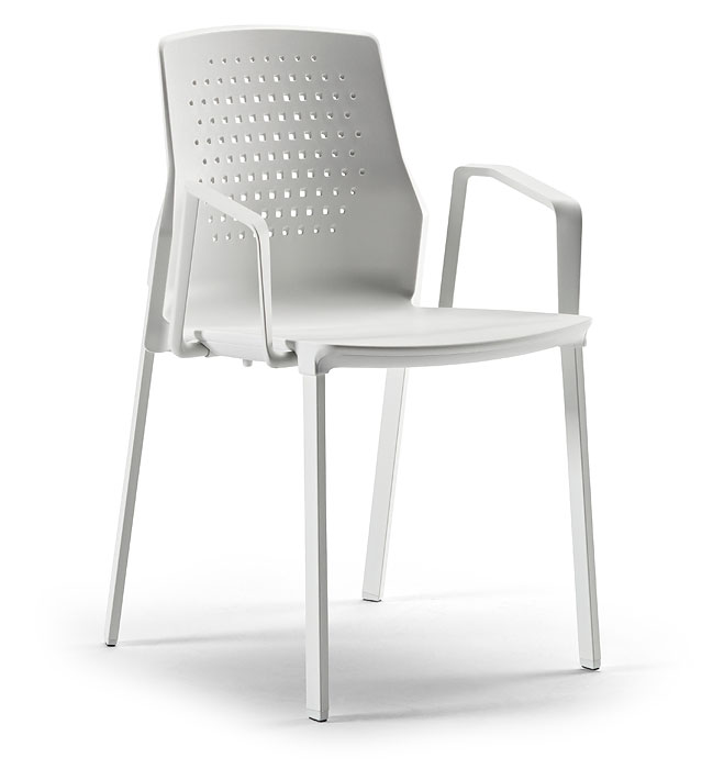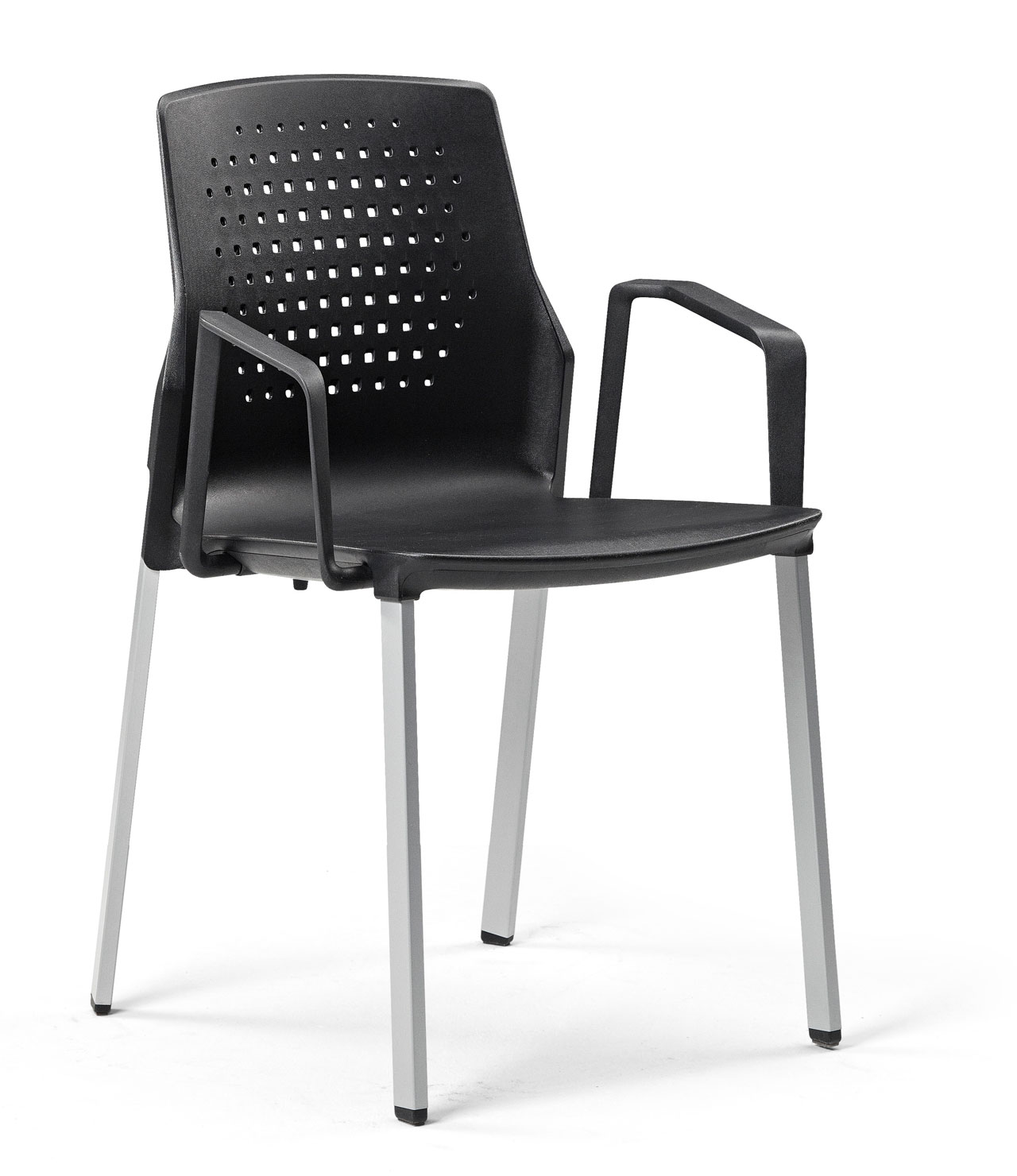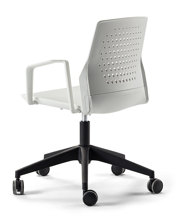 Silla versátil, ligera y de fácil almacenamiento, de líneas fluidas y vanguardista, montada sobre una estructura metálica que se adapta a cualquier necesidad de uso. Su textura transpirable aporta una perfecta sujeción lumbar.