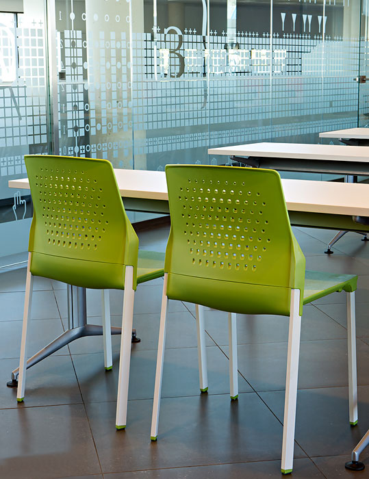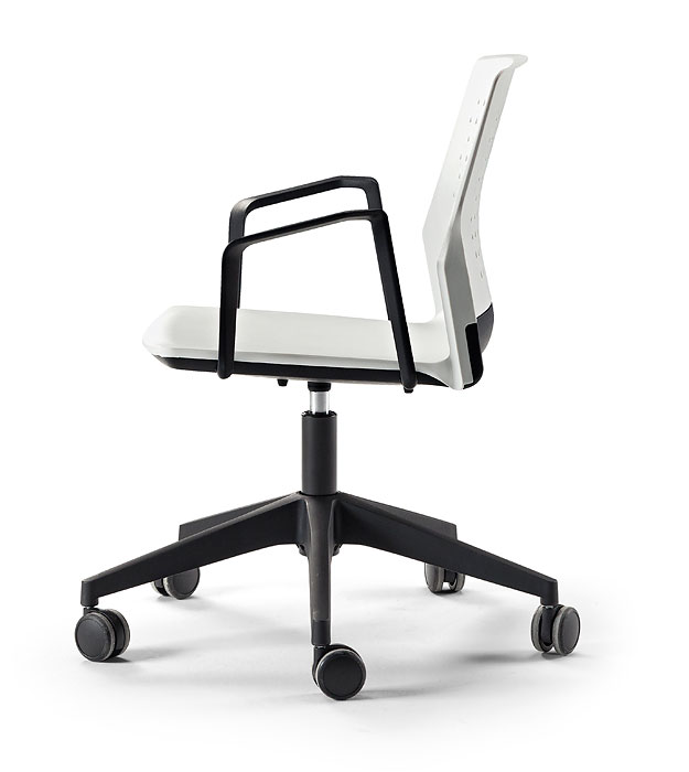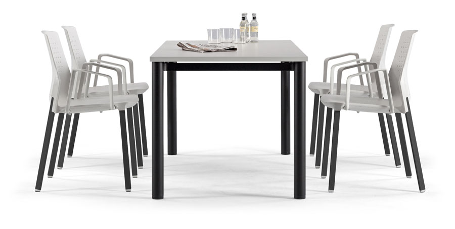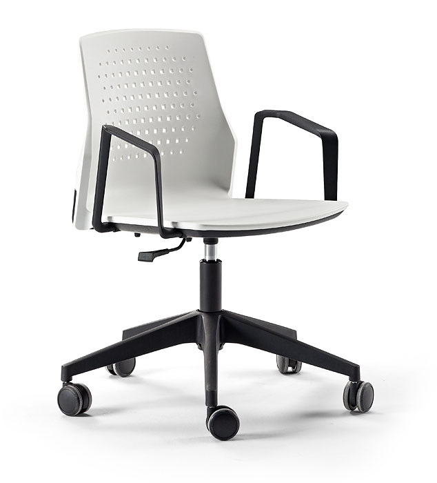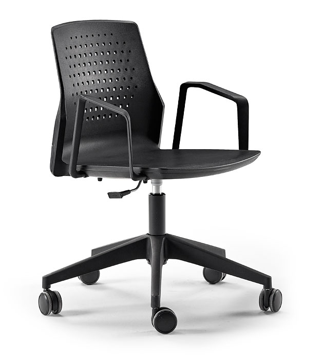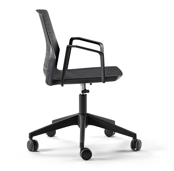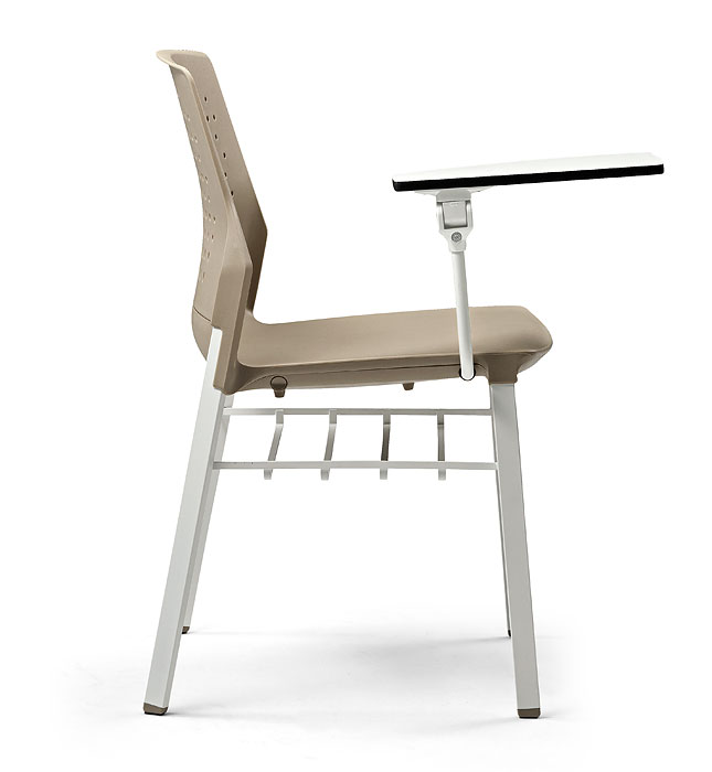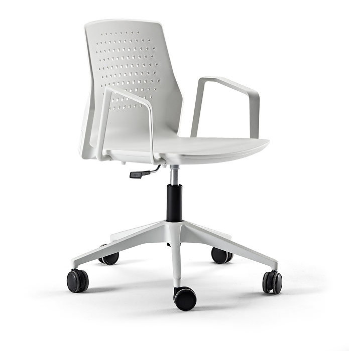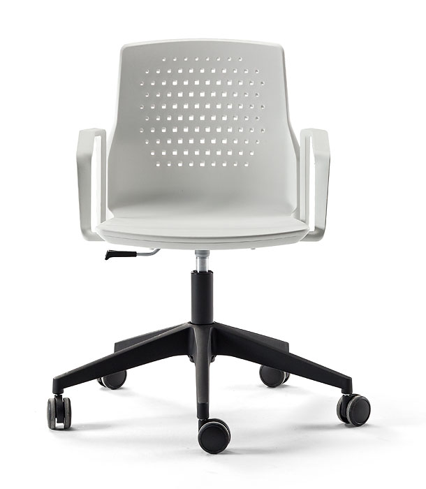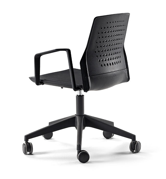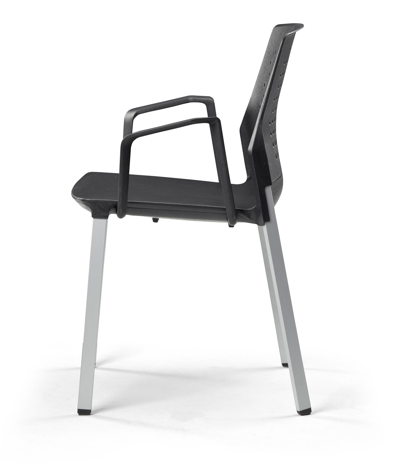 Silla versátil, ligera y de fácil almacenamiento, de líneas fluidas y vanguardista, montada sobre una estructura metálica que se adapta a cualquier necesidad de uso. Su textura transpirable aporta una perfecta sujeción lumbar.
