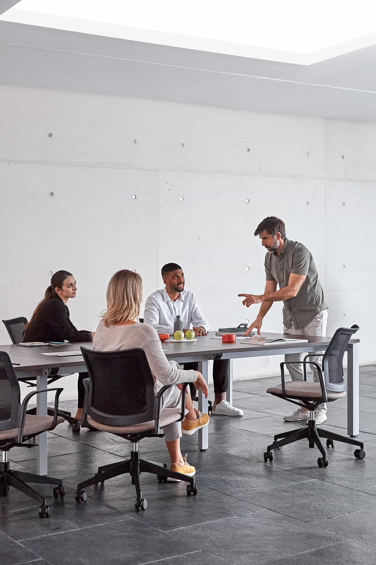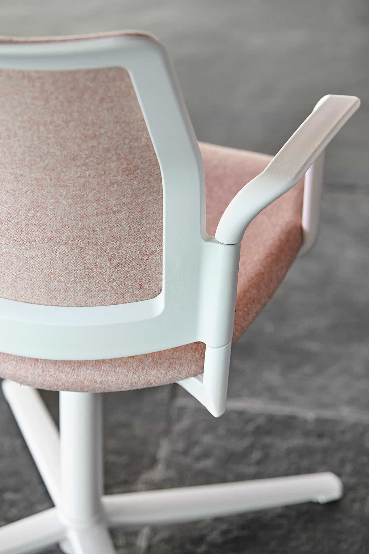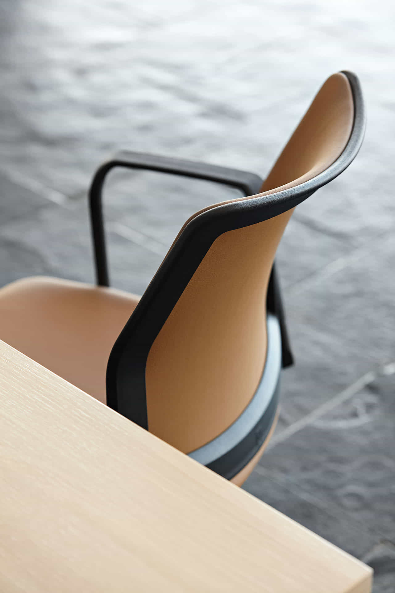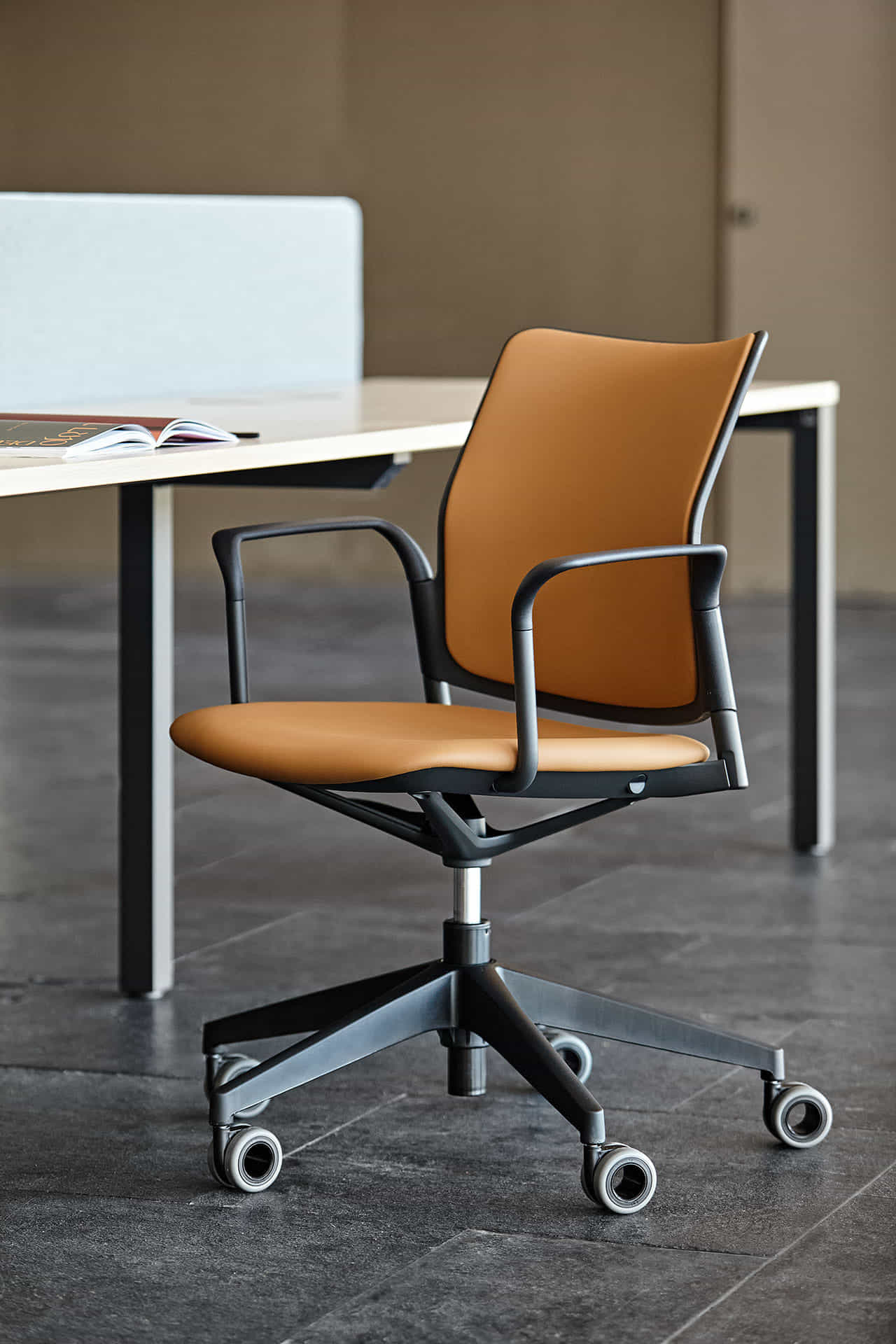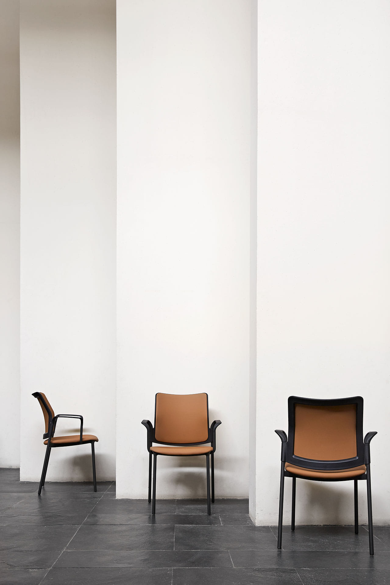 Una silla versátil de líneas naturales y ergonómicas. Su estilo discreto y presencia elegante se complementan con el confort que aporta su estructura interior de acero recubierta con espuma de poliuretano inyectada.