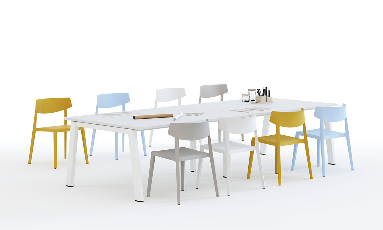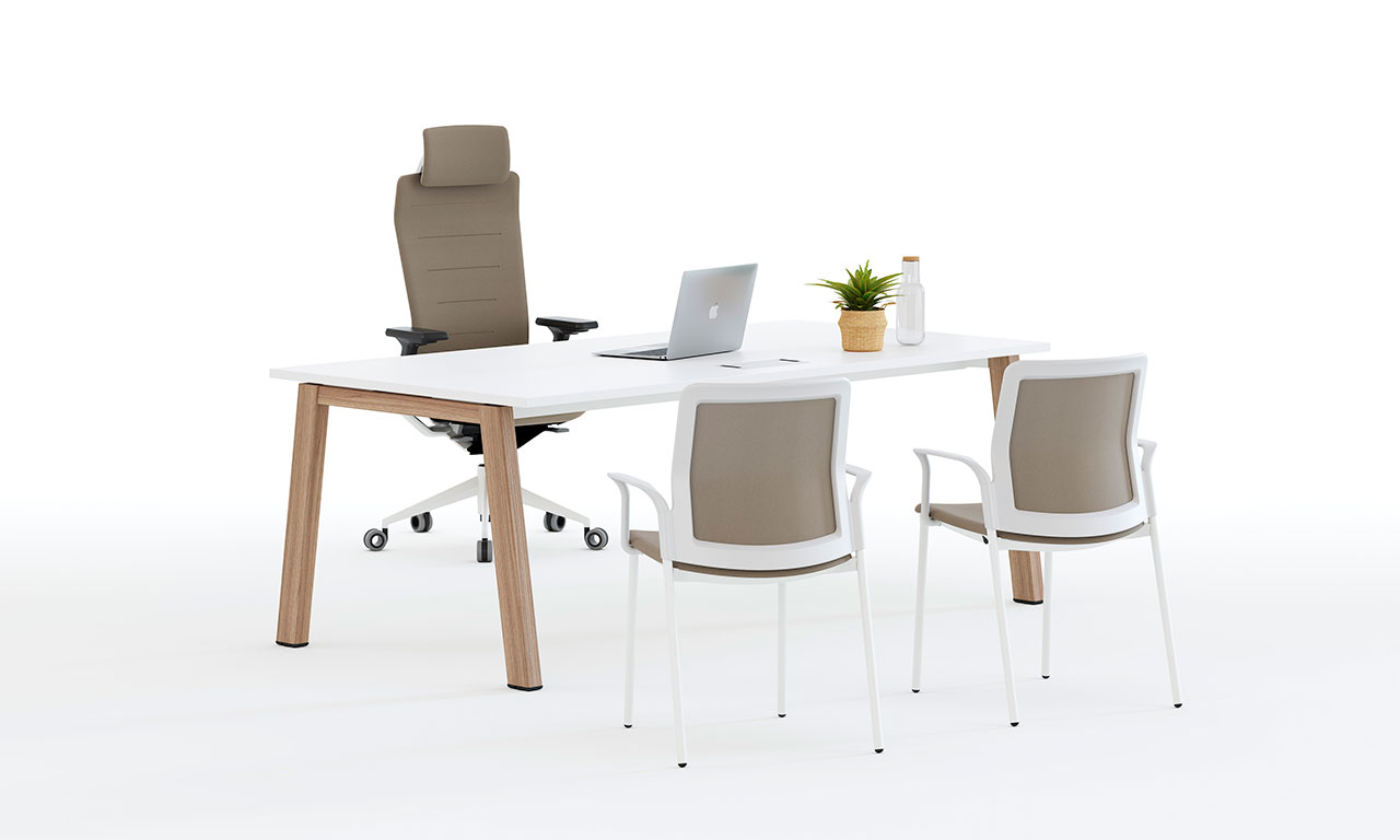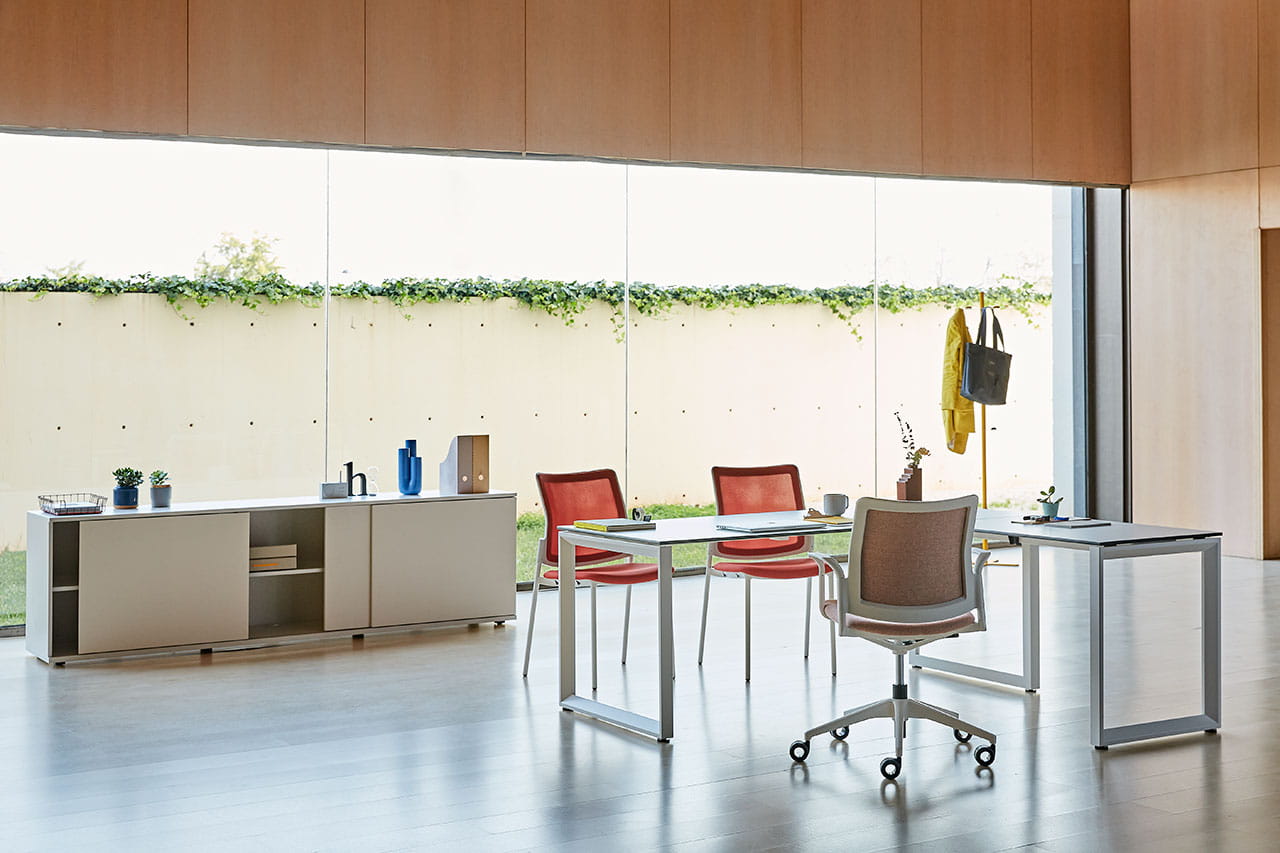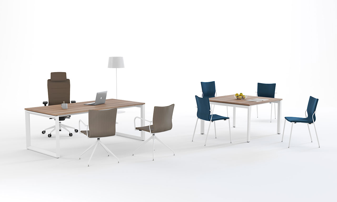 Nueva evolución con un amplio programa para los actuales espacios de trabajo; mesas de oficina, mesas operativas, mesas de despacho, mesas dobles y mesas de reunión. Soluciones para satisfacer las exigencias de las actuales demandas de mobiliario de oficina.