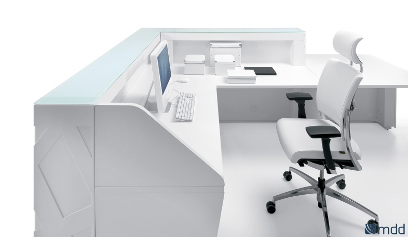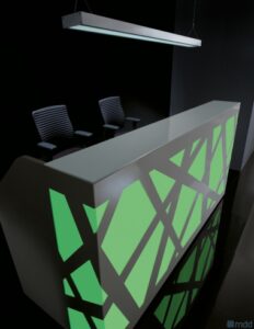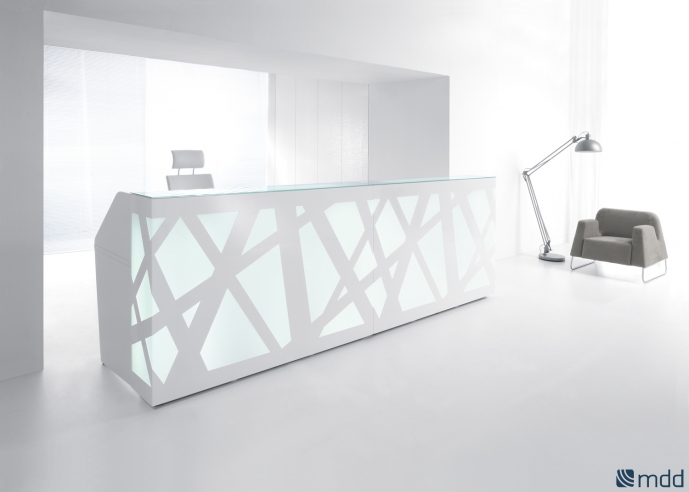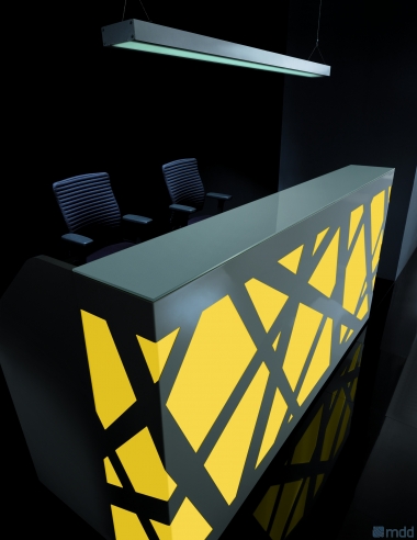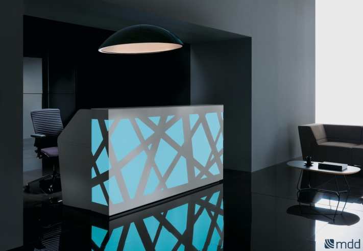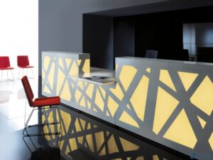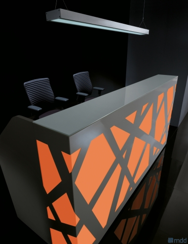 La nueva área de recepción Zig Zag parece ser la combinación ideal de estilo, la fiabilidad y la sencillez. Los paneles frontales combinan entrelazando estructuras metálicas y plexiglás, producir la sensación de ampliar el espacio en los habitáculos donde se encuentra. Ingeniosamente vidrio artesanal cubre la parte superior del área de recepción asegurándose de que su oficina está en la cima de la modernidad. El mostrador de recepción se compone de bloques de diferentes tamaños, que permiten arreglos versátiles. La iluminación de fondo único con diferentes colores no sólo ayuda a personalizar la oficina , sino también para añadir encanto y perfección a la misma. Modos diversos y los regímenes de color operados por un mando a distancia son estéticamente agradables y demanda dentro de una amplia gama de interiores contemporáneos.