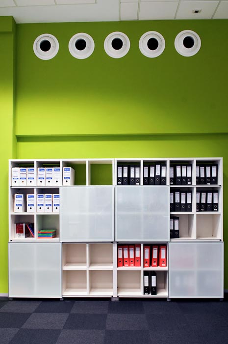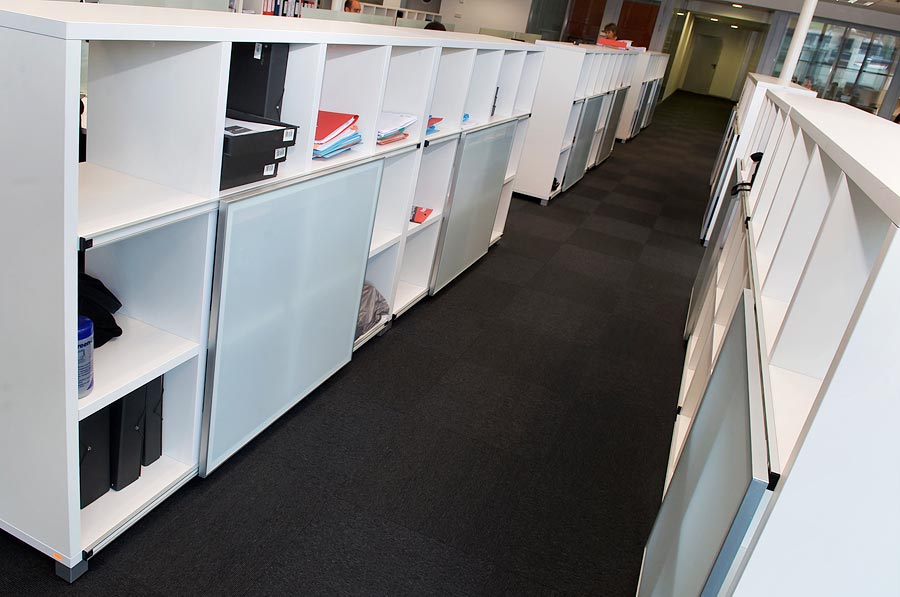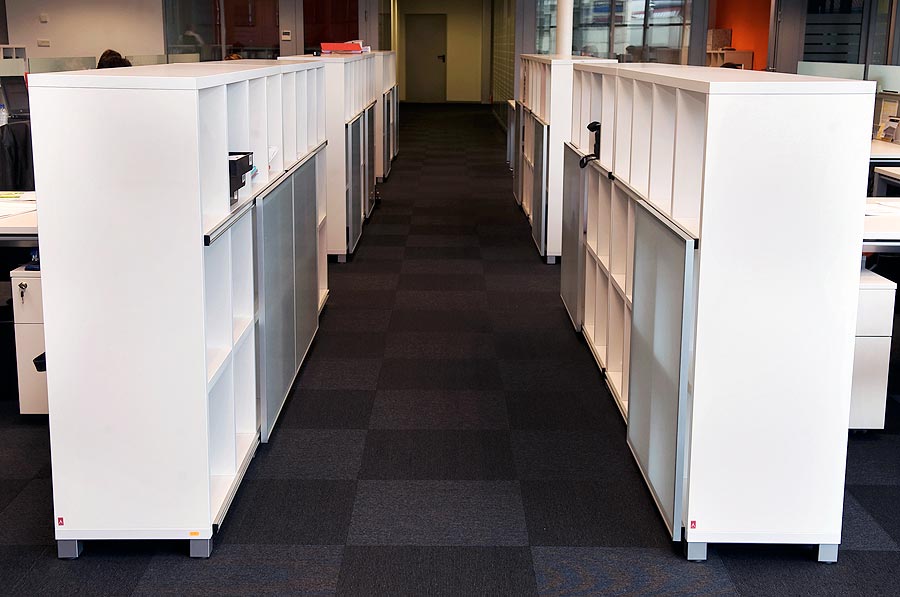 En la empresa Antzibar, la instalación realizada fue todo un éxito, los puestos de trabajo se formaron creando islas, aumentando la comunicación de cada uno de los usuarios, ademas en los pasillos se instalaron armarios para que el almacenaje estuviera en las zonas comunes y accesibles a cualquier compañero.