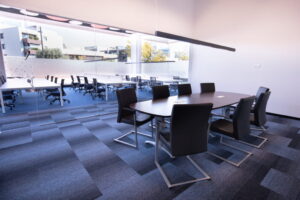 - Compartimentando espacios para reunión con mamparas con cristal acústico.