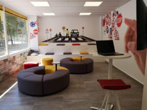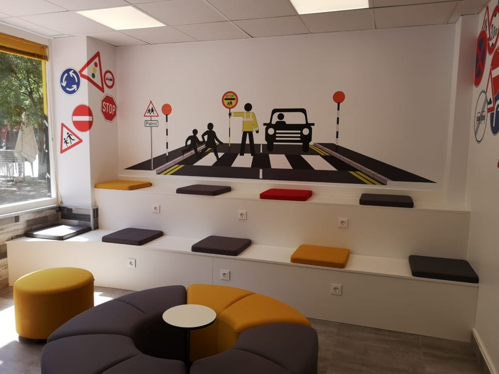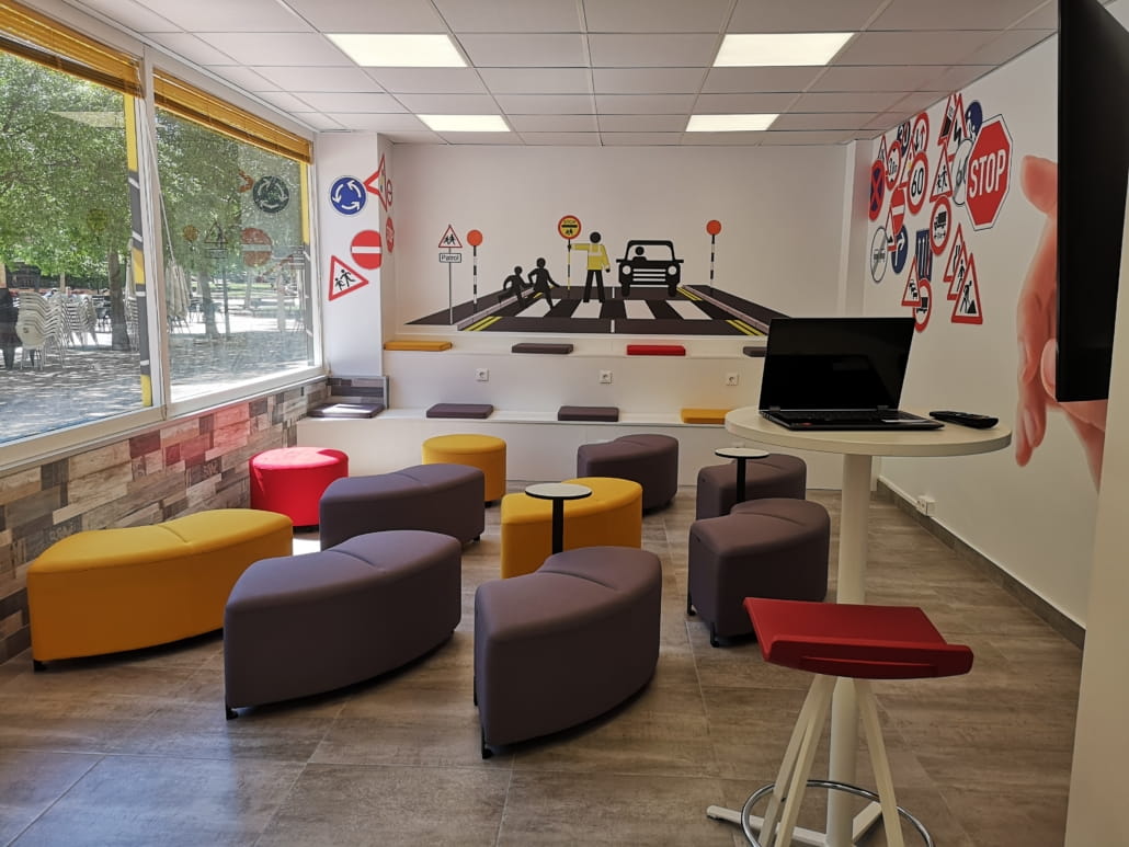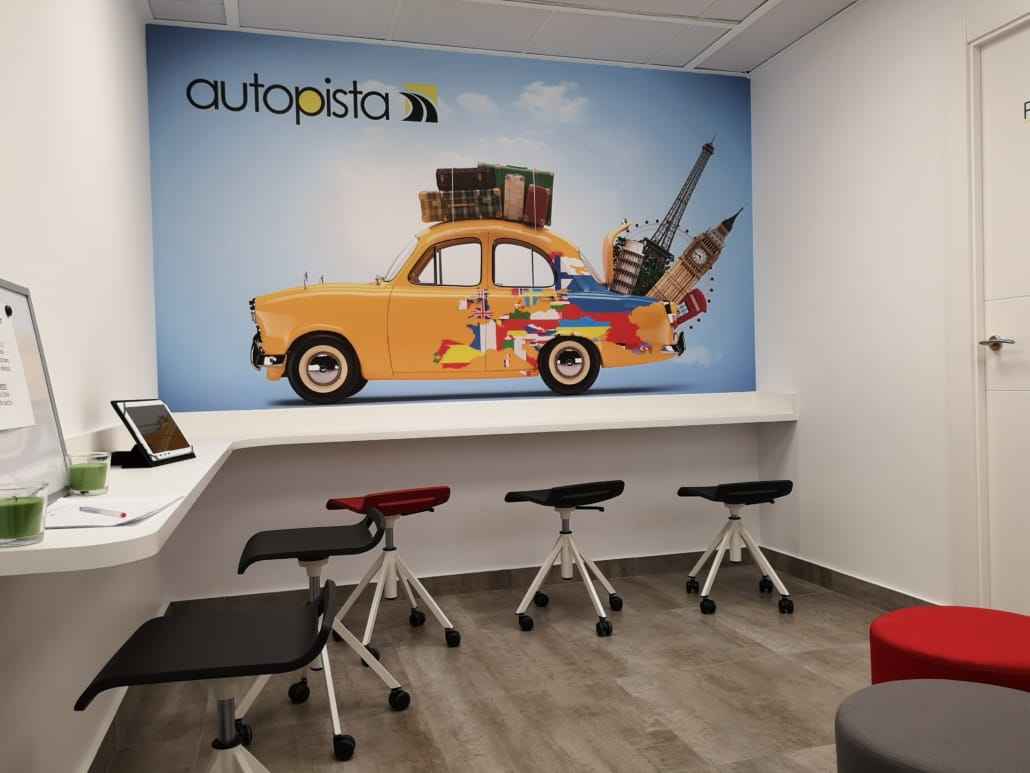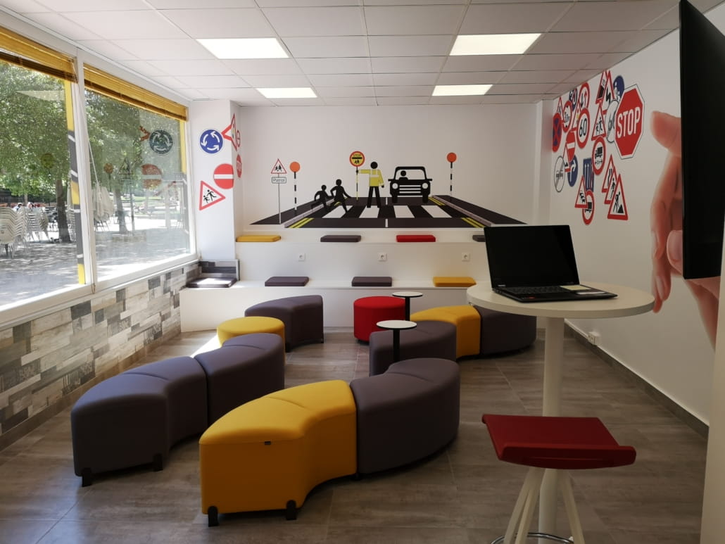 La Autoescuela Autopista quería un centro motivador, inspirador, diferente y que atrajese a los jóvenes. MECUX, estudio las posibilidades del local y creo un diseño e imagen visual con todas estas cualidades, creando sobre todo movimiento y vida.