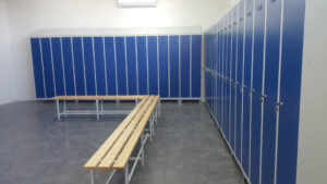 MECUX, fue la empresa encargada de equipar las nuevas instalaciones centrales en el Pol. Ind. Plaza, y entre las fases de actuación también se contemplaron los vestuarios.