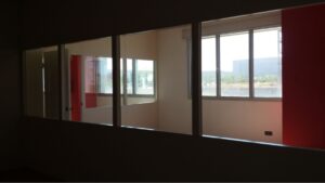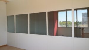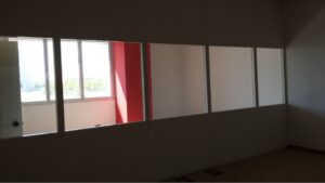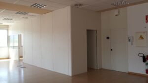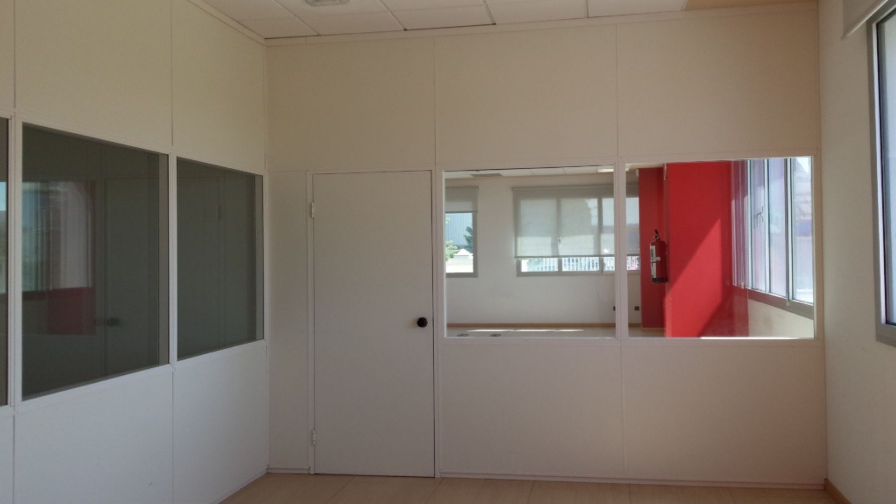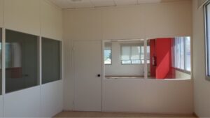 En esta ocasión, en Breogan, se instalaron mamparas de suelo a techo en acabado melamina ciego, color Blanco, para dotar de la mayor intimidad posible entre espacios, ya que se realizan reuniones simultáneas con proyección. Las mamparas incorporan en la parte interior lana de roca, para absorber el sonido y retenerlo. Se ha conseguido una acústica de altas prestaciones técnicas.