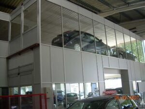 Muchos concesionarios necesitan duplicar el espacio para albergar más vehículos y esto lo podemos solucionar con Entreplantas que posteriormente se pueden forrar con mamparas de separación. Esta serie de fotografías nos muestran diferentes instalaciones realizadas en este sentido. Las entreplantas nos permiten duplicar los metros cuadrados de una manera eficiente y no muy costosa. Además, nos permiten modificar en un futuro su forma y condición, por lo que es una alternativa muy positiva.