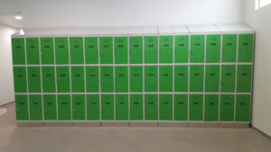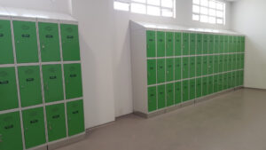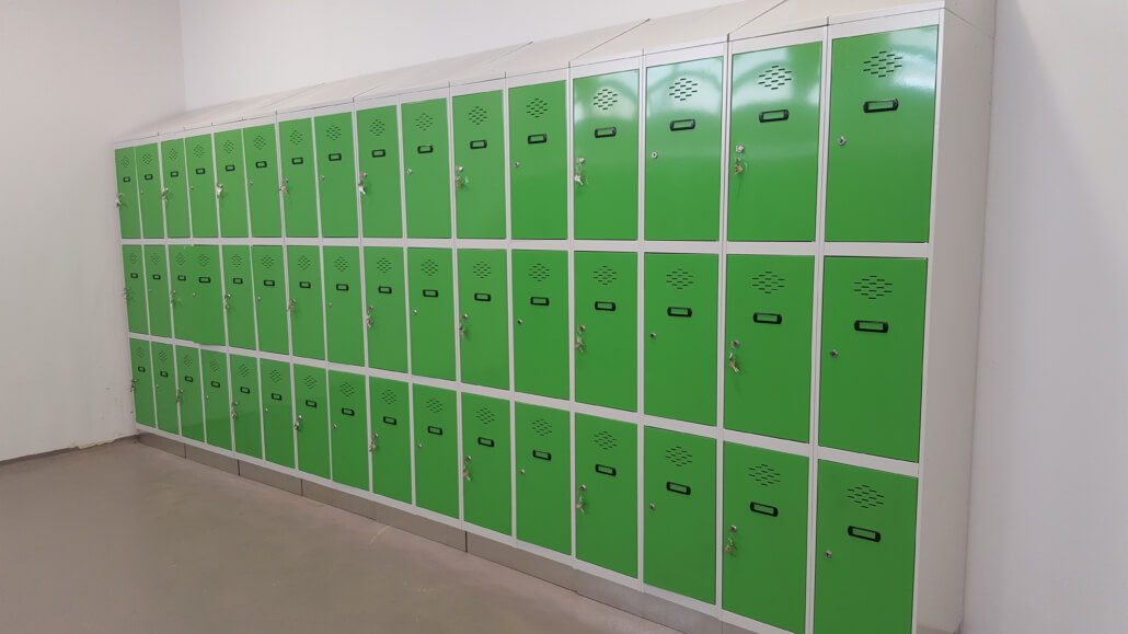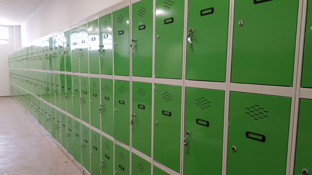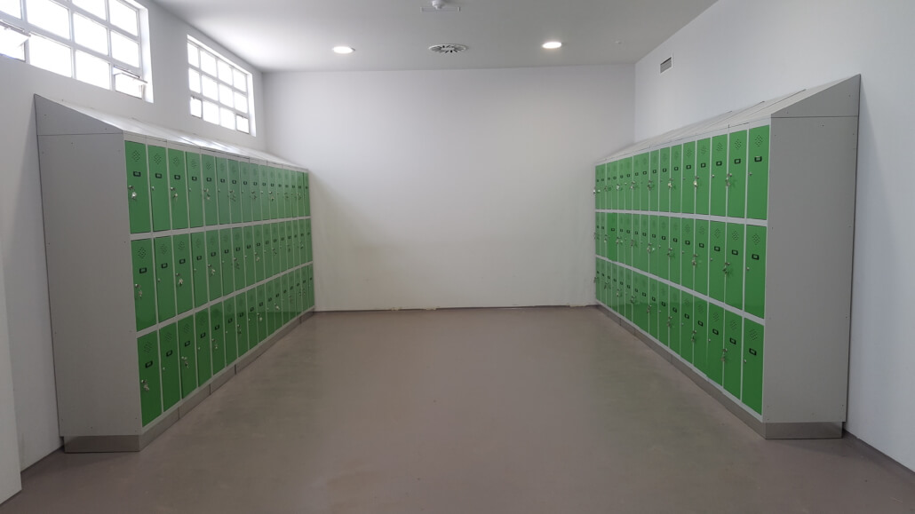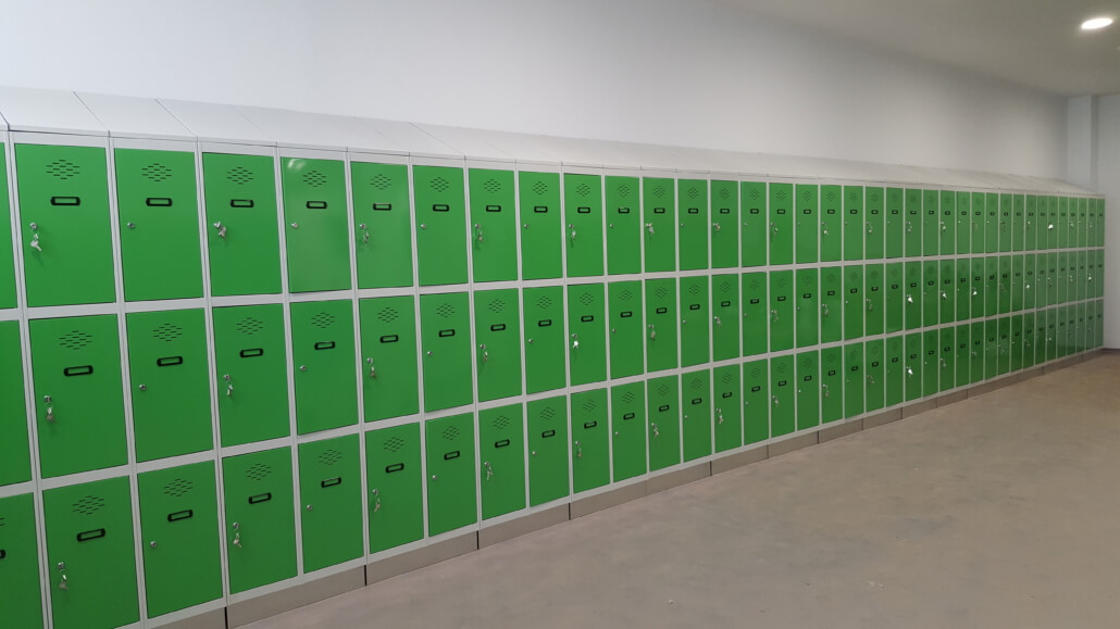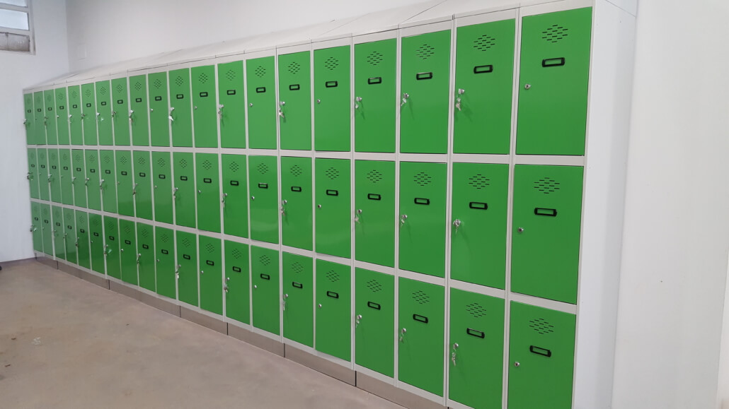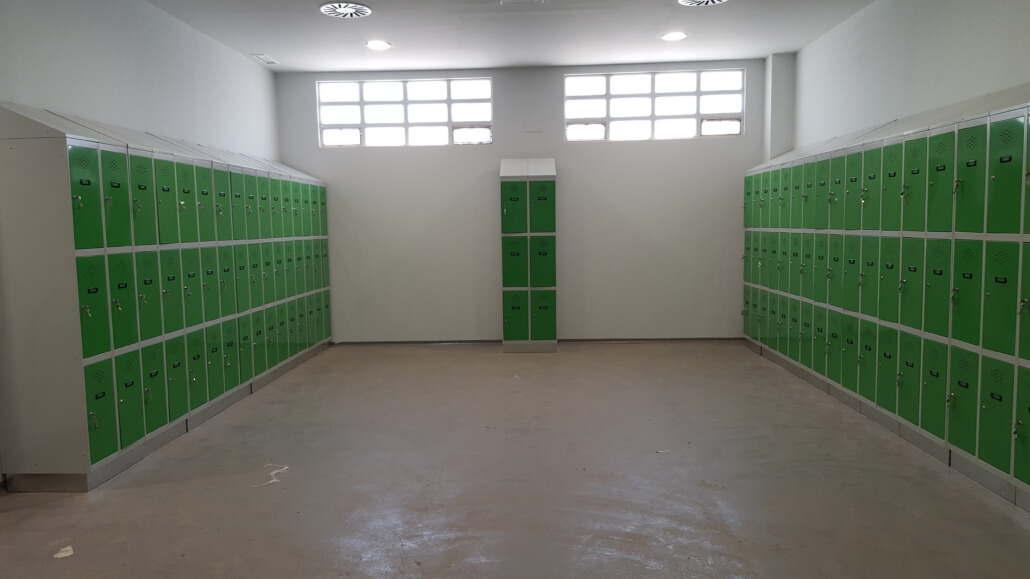 - Zócalo de acero inoxidable para que, a la hora de realizar la limpieza diaria de los vestuarios, no se oxiden las taquillas en contacto con los productos abrasivos.