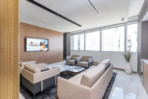 El espacio utiliza el mobiliario como una potente herramienta para definir el nivel de privacidad de cada zona. Con un distintivo estilo de diseño y unos elevados estándares de calidad con los que, tanto la vicepresidenta y fundadora de HealthGains, Liliana White, como la diseñadora sénior encargada del proyecto, Maria Trochez, se identificaron desde un primer momento, Actiu tiene una presencia significativa en el proyecto.