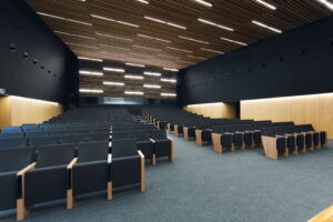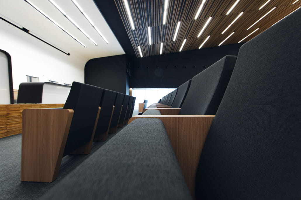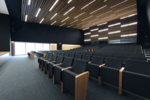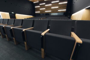 El nuevo centro sanitario cuenta con un auditorio con capacidad para más de 250 personas, diseñado para garantizar una acústica óptima y la confortabilidad a través de las butacas Audit.
