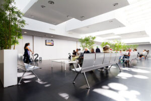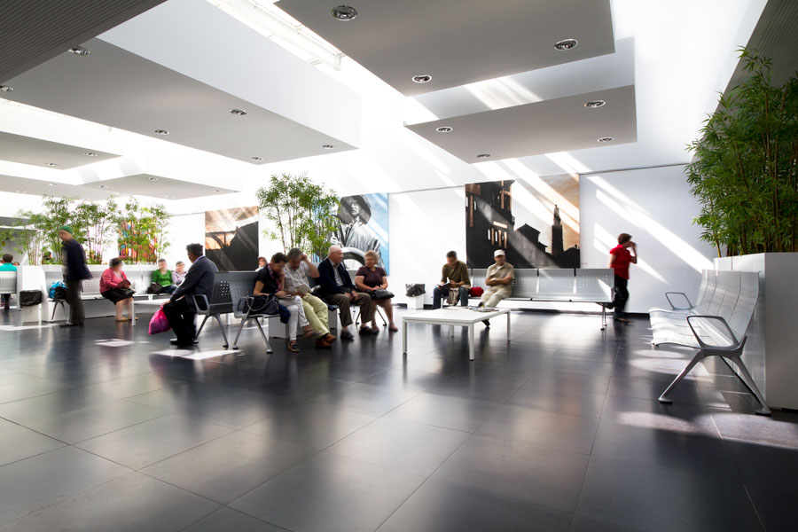 Se han equipado las amplias zonas de espera con la bancada Transit, la apuesta perfecta cuando se trata de equipar espacios públicos destinados a un uso intensivo en zonas de espera y tránsito.