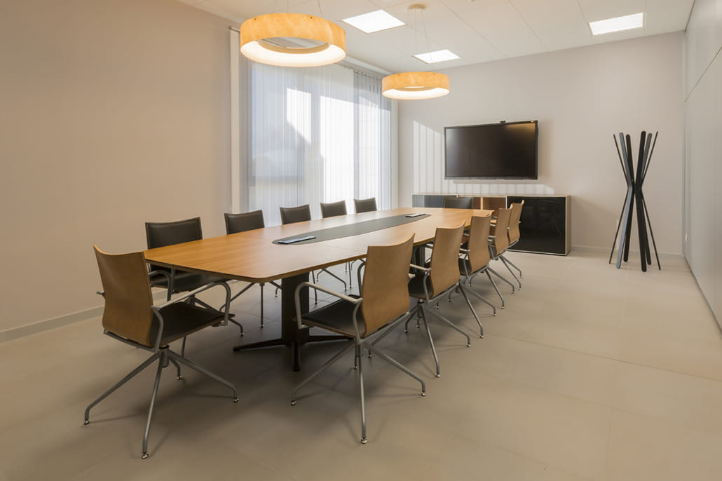 Servicios comunes como el comedor y el gimnasio, zonas verdes exteriores con olivos centenarios, una cuidada estética y una máxima eficiencia energética definen las nuevas instalaciones. Una nave de 17.000 m2 en un solar de 60.000, junto a la que Jaylo ha construido sus nuevas oficinas, en sustitución a otras que se habían quedado ya pequeñas.