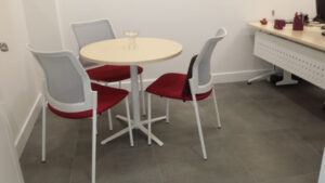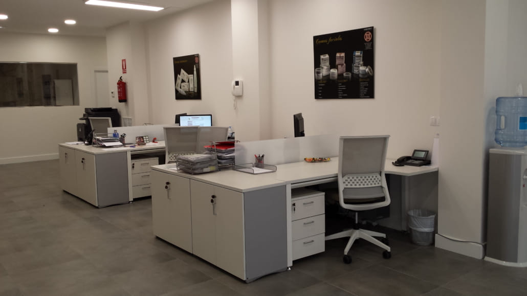 En la empresa Laboratorios Simildiet se han instalado todos los habitáculos con mobiliario específico en cada caso. En la entrada de la empresa, se ha realizado un armario expositor con una mesa que nace del centro con la intención de atender al público con un estilo tipo Boutique. En las oficinas y en los despachos se ha elegido el Moldeo Vital, en acabado Blanco, con armarios blancos y sillas con estructuras blancas, excepto el tapizado en Gris, por otorgarle cuerpo a la instalación. En la sala de formación, sillas de colectividades con pala de escritura para poder coger notas en las partes explicativas. Unas instalaciones limpias, claras y prácticas para el día a día.