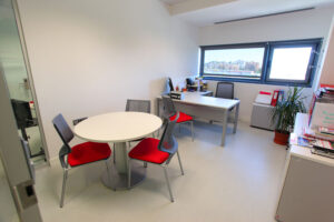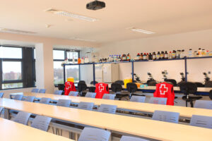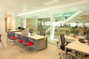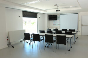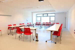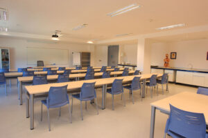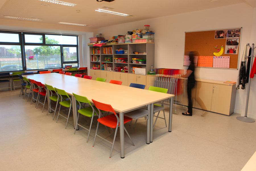 La edificación dispone de 16 aulas. Casi la mitad del espacio está destinado a acoger el Centro de Formación Profesional, en el que se han dispuesto amplias estancias para laboratorios, salas de prácticas y clases que se han equipado combinando los programas, Trama, de mesas abatibles, por una parte y por otra Cool, de estética limpia y múltiples configuraciones.