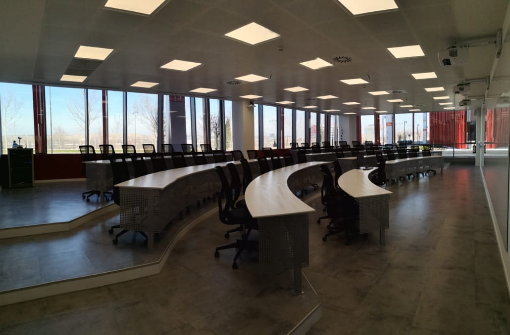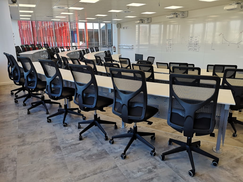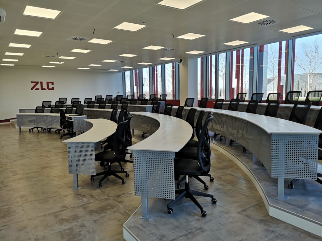 En sus nuevas instalación situadas en la EXPO Zaragoza, MECUX, se ha encargado, entre otras cosas, del equipamiento con las sillas ergonómicas de la joya de la corona del centro: en la sala de formación / congreso / auditorio internacional. Una sala especial con sillas ergonómicas en un espacio de trabajo propio de las grandes multinacionales de la logística.